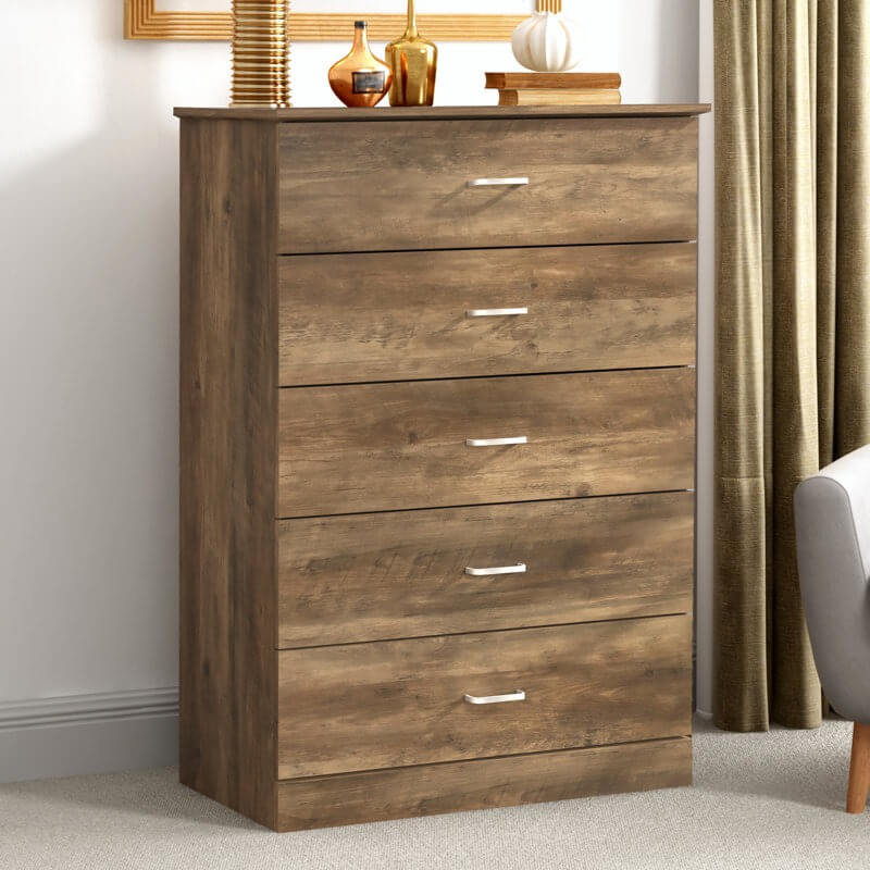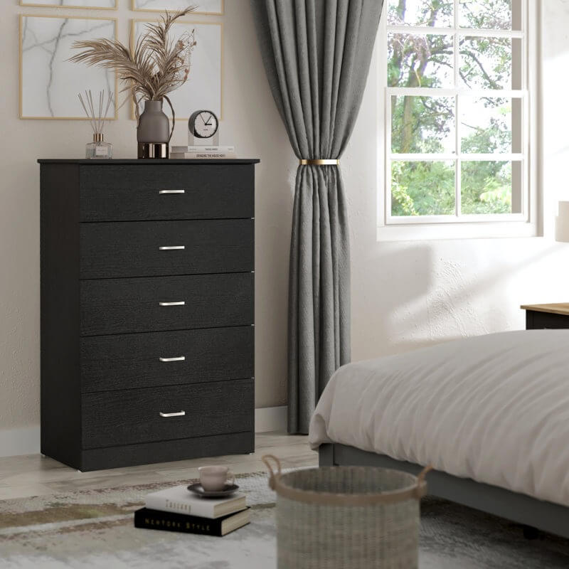 The inclusion of five drawers in the chest significantly expands its storage capacity, offering versatile organization options for a wide range of items.