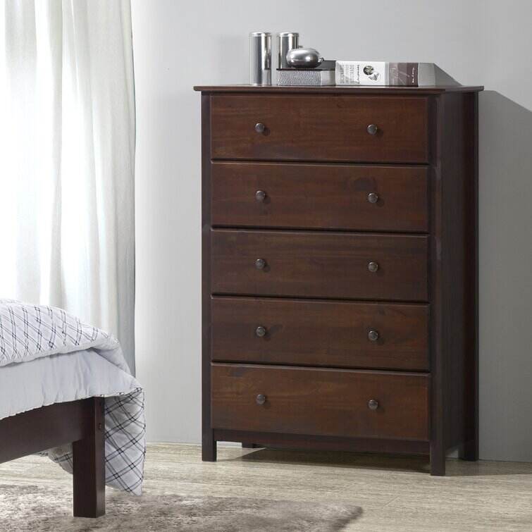 Attractive metal knobs, and elegant Shaker style: this luxurious-looking chest has what it takes to give your bedroom that refined touch. Made of 100% Solid Pinewood, this chest features a sturdy construction that can last for years. Featuring an eco-friendly design, this piece has minimal impact on the environment as all wood comes from renewable forests.