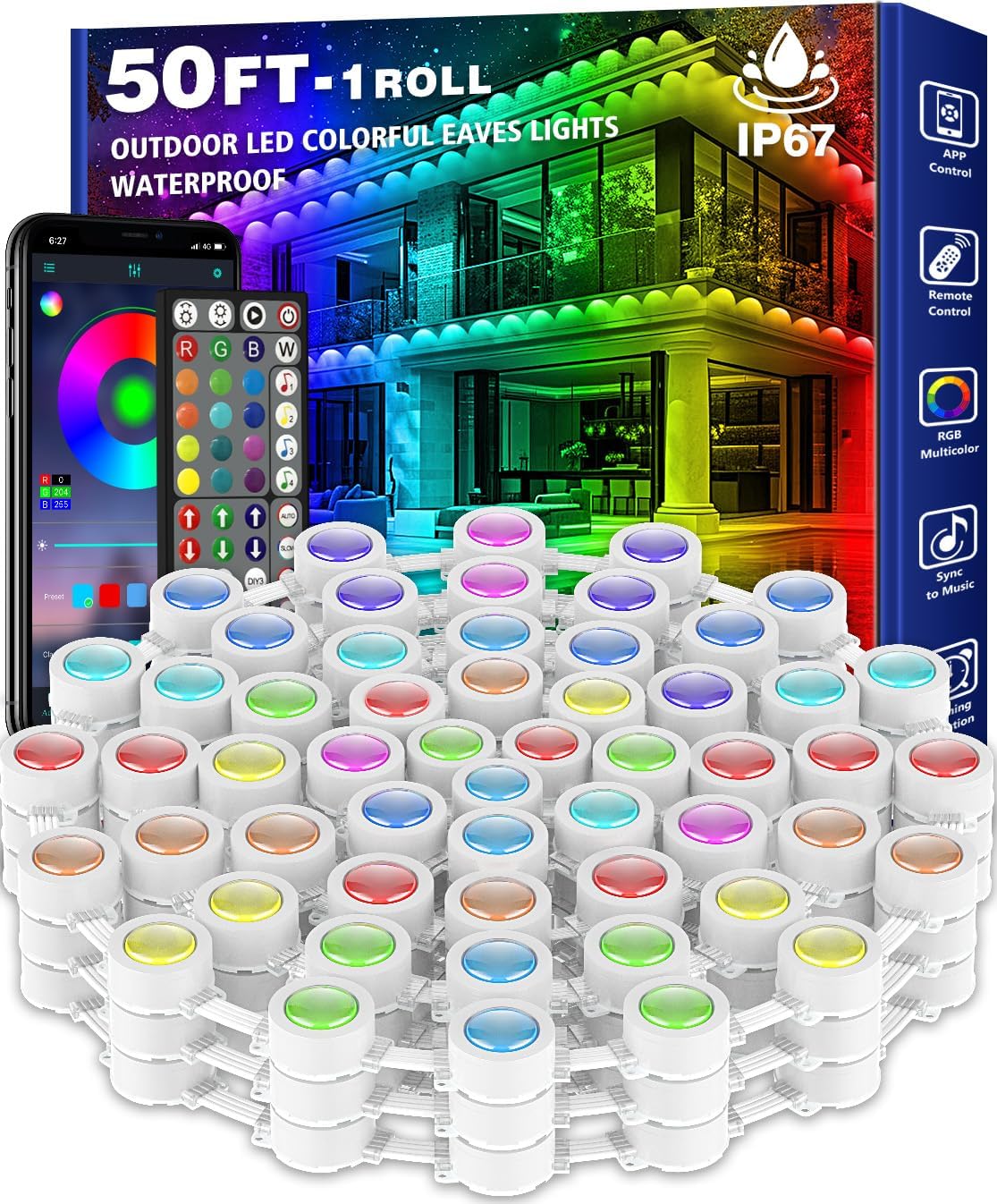200FT Permanent Outdoor RGB Lights,IP67 Waterproof Smart LED Eaves Lights with App/Remote Control,for Christmas and All Holiday Decor,Daily and Accent Lighting,House Roof and Garden Lighting