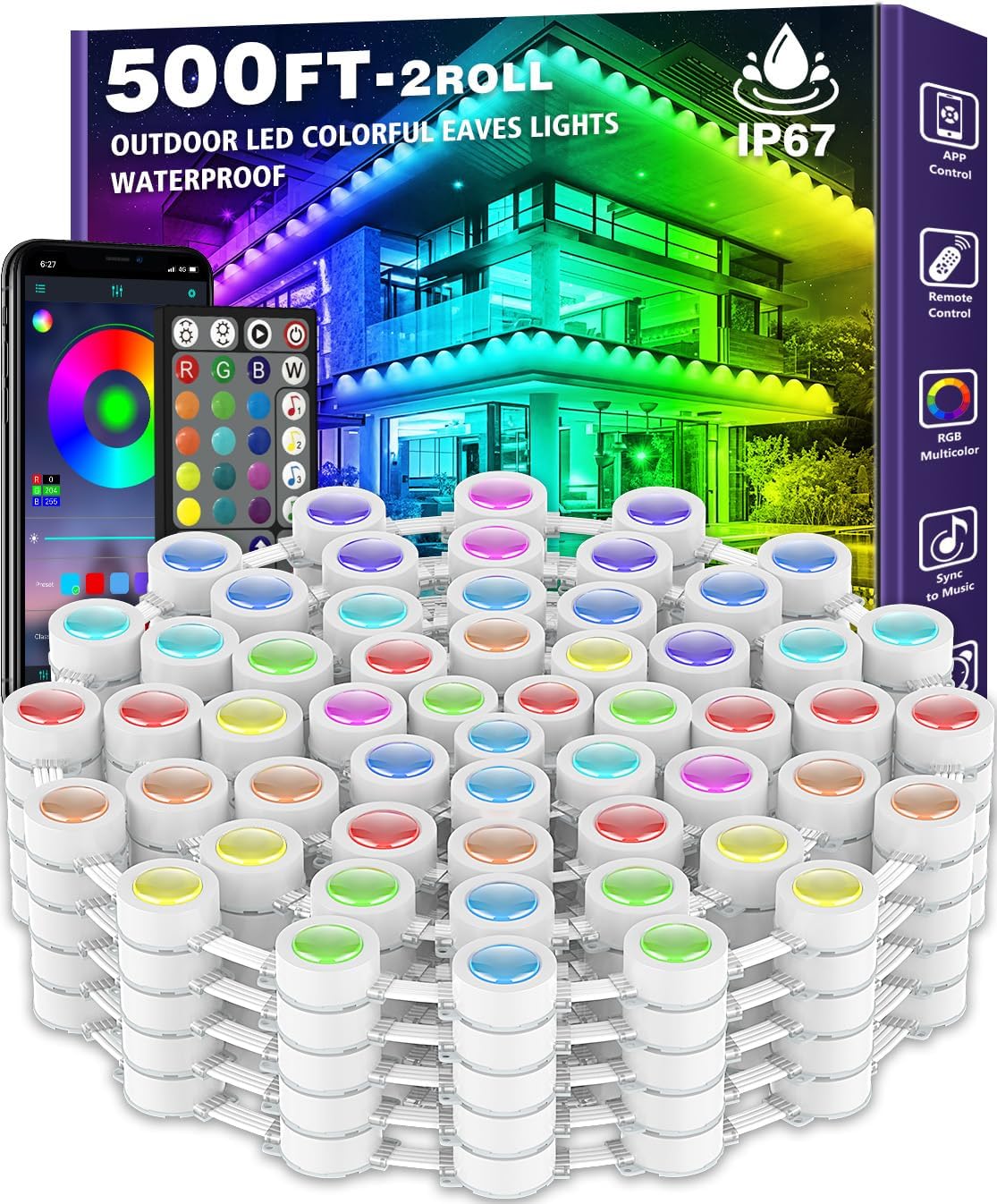 • 200FT Permanent Outdoor RGB Lights,IP67 Waterproof Smart LED Eaves Lights with App/Remote Control,for Christmas and All Holiday Decor,Daily and Accent Lighting,House Roof and Garden Lighting