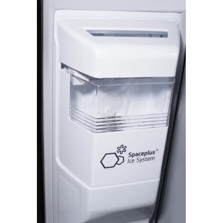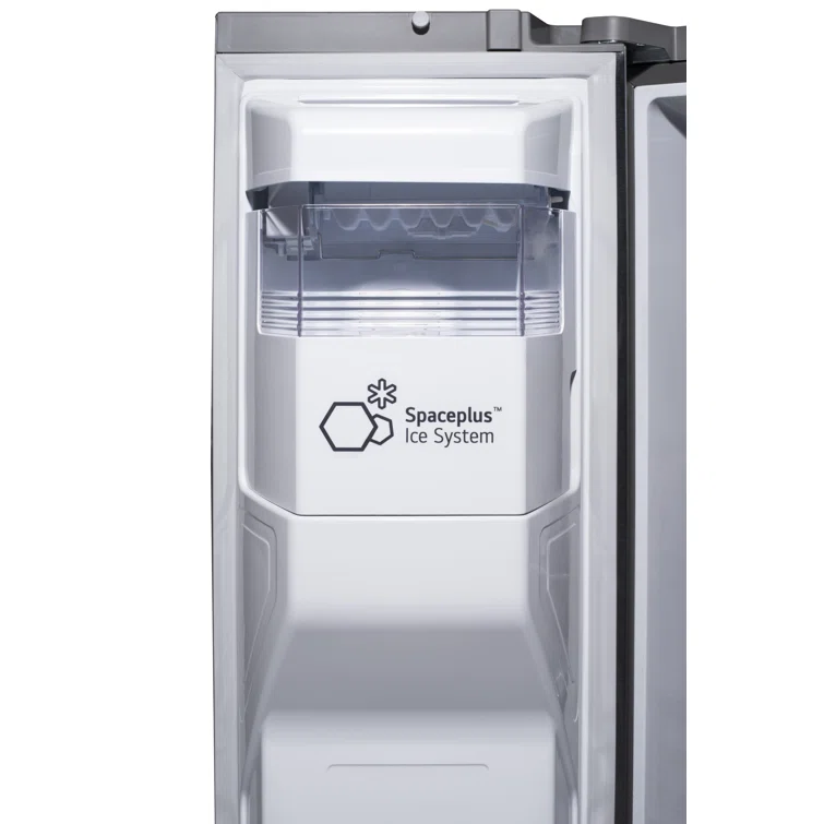 - SpacePlus ice maker on the freezer door dispenses traditional cubed ice. You��ll have enough to fill the cooler.