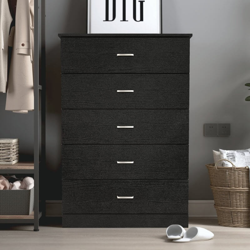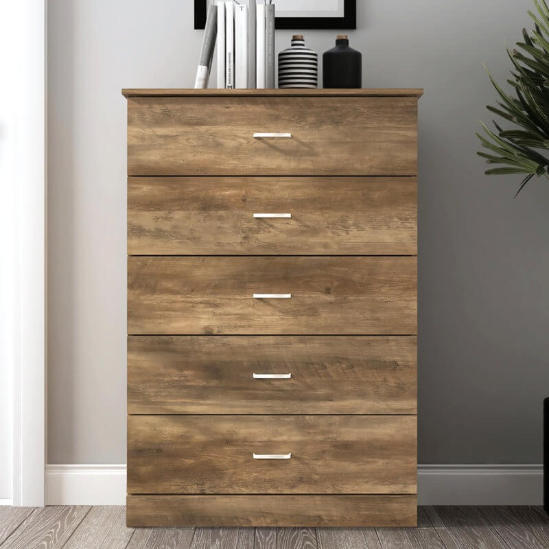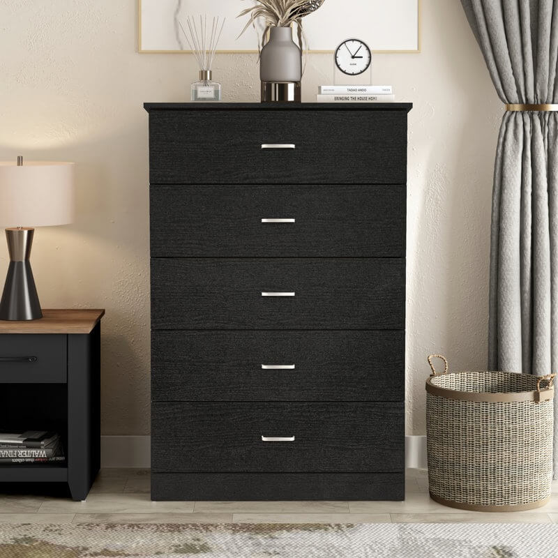 The inclusion of five drawers in the chest significantly expands its storage capacity, offering versatile organization options for a wide range of items.