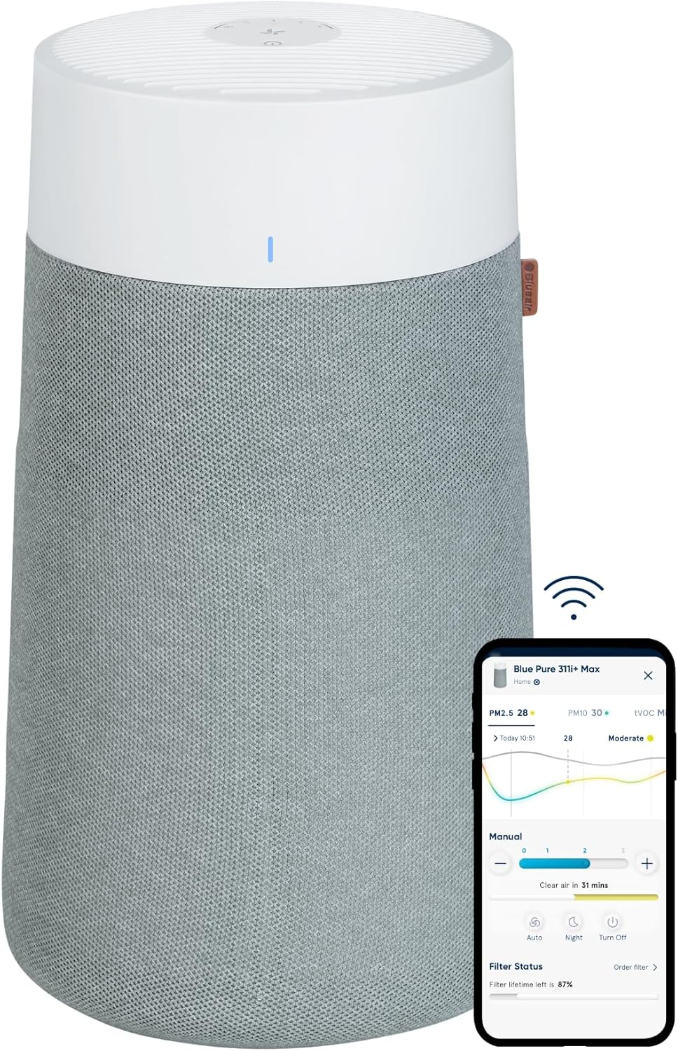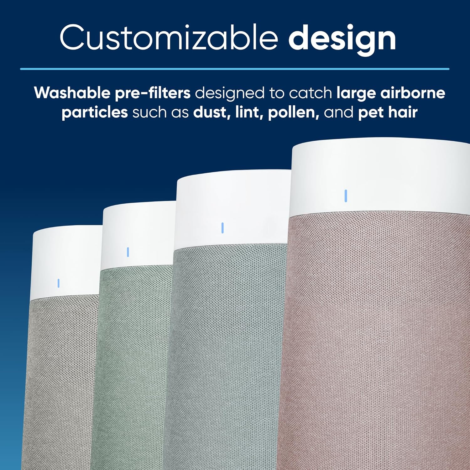 BLUEAIR Air Purifier Large Room, Air Cleaner for Dust Pet Dander Smoke Mold Pollen Bacteria Allergen, Odor Removal, for Home Bedroom Living Room, Washable Pre Filter, HEPASilent, Blue 211+ (Non-Auto)
