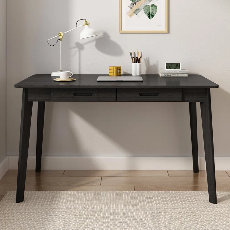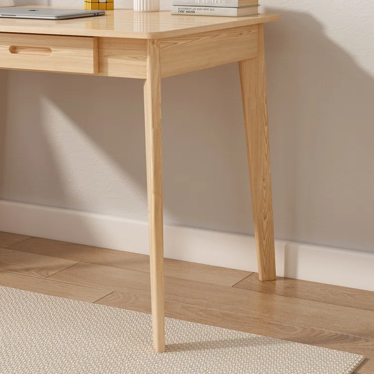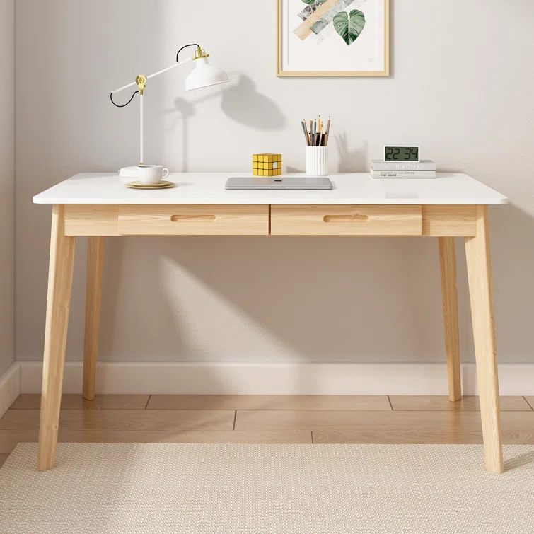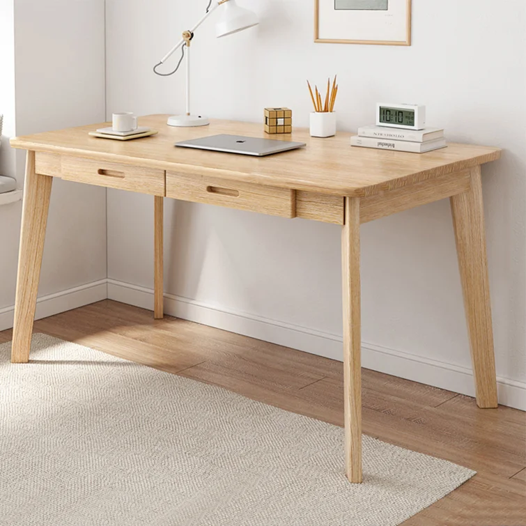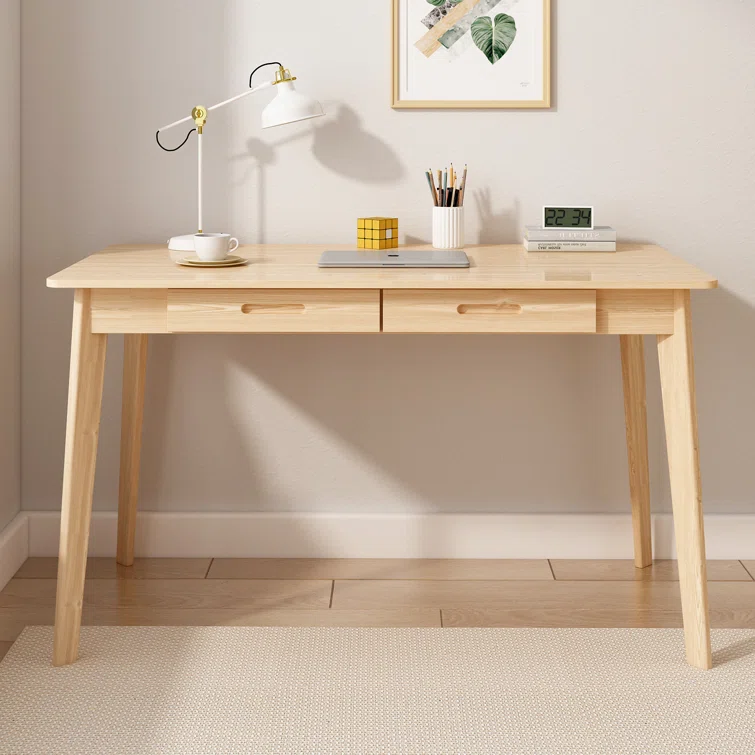 Do you want a wooden desk with pure color? May try this. This desk has a large desktop, pure color, and delicate wood grain, full of natural atmosphere. There are 2 drawers under the tabletop, enough space for your books, pens, notes, or other small things. The drawer slide is made of pure wood and is easy to use. Put it anywhere - bedroom, study, or living room, it can provide you with a comfortable office and study space.