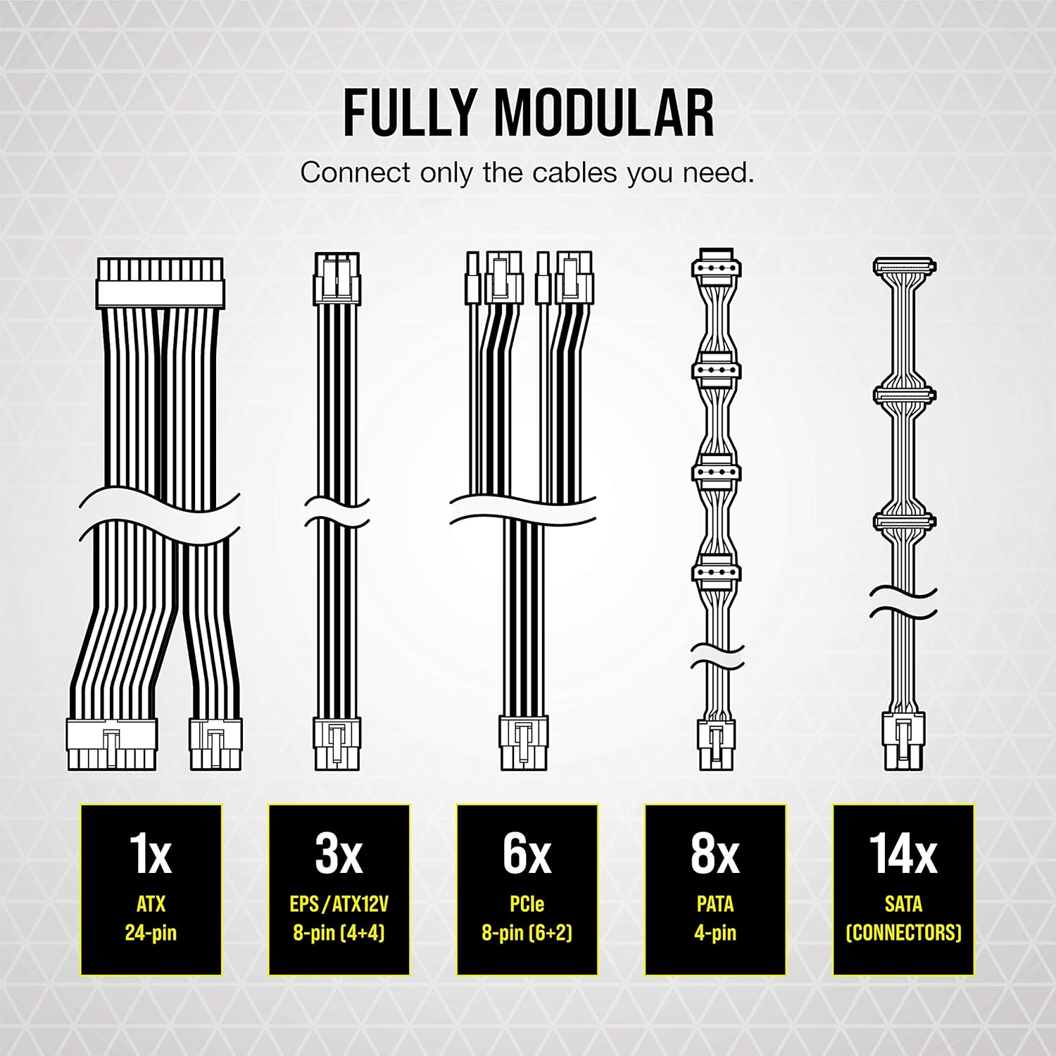 - Fully Modular: Only connect the cables your system needs, making clean and tidy builds easier.