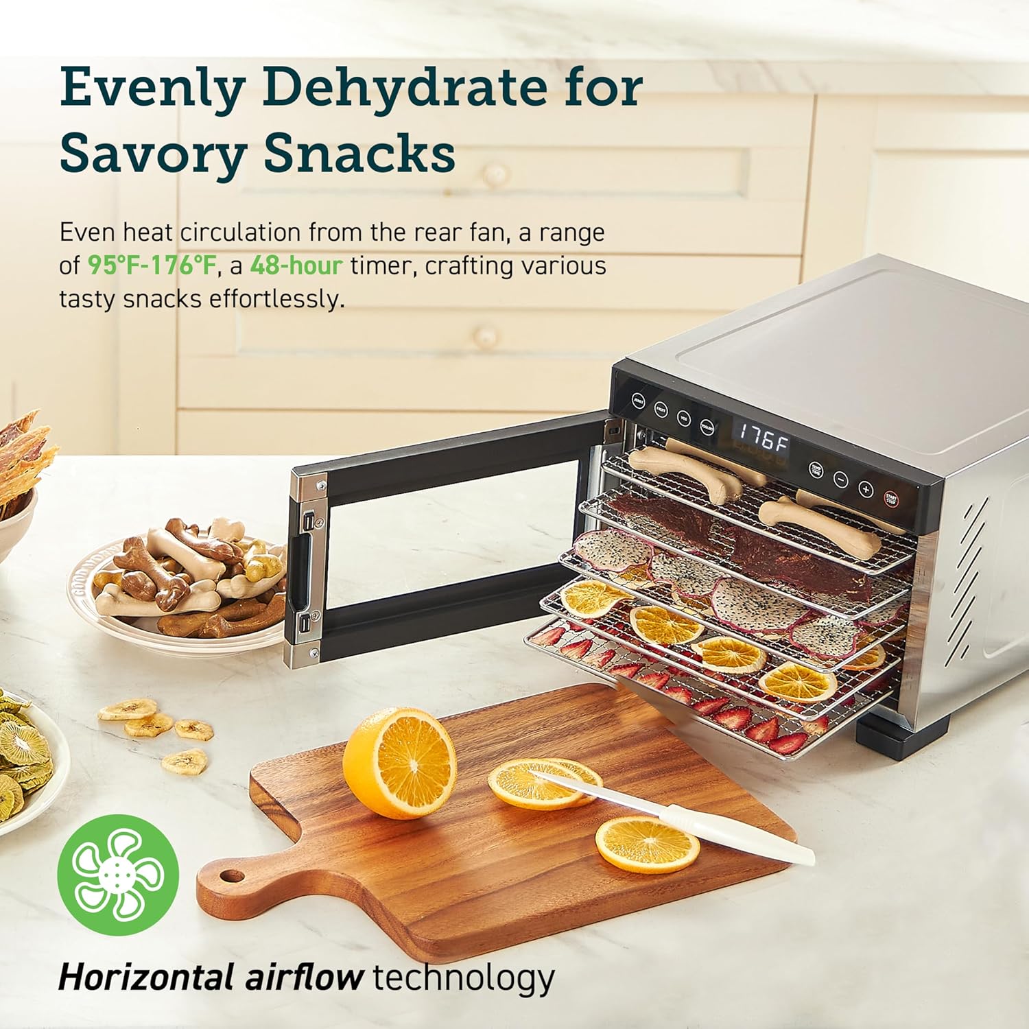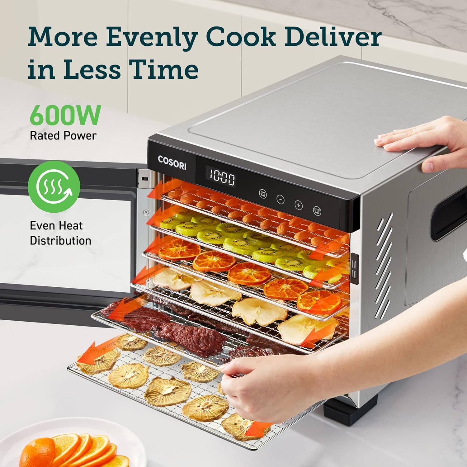COSORI Food Dehydrator for Jerky, 176°F Temperature Control, 5 Stainless Steel Trays Dryer Machine, 4 Presets, 48H Timer, for Dog Treats, Meat, Fruit, Veggies, Snacks, Recipe Book Included