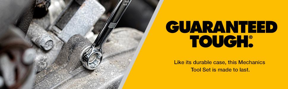 • Durable carrying case with metal latches protects mechanics tools in tough conditions.
