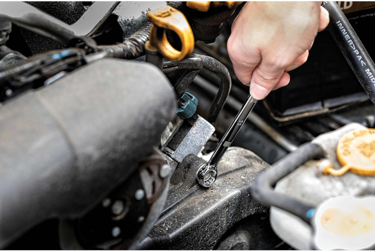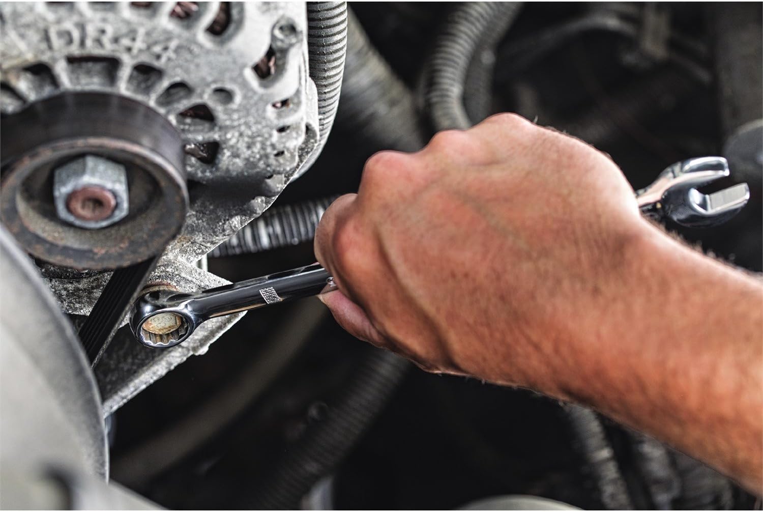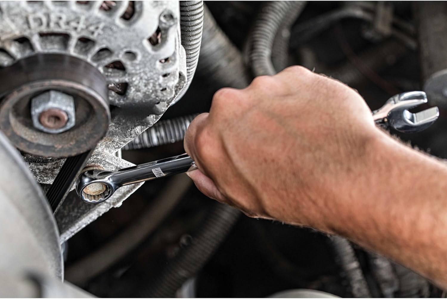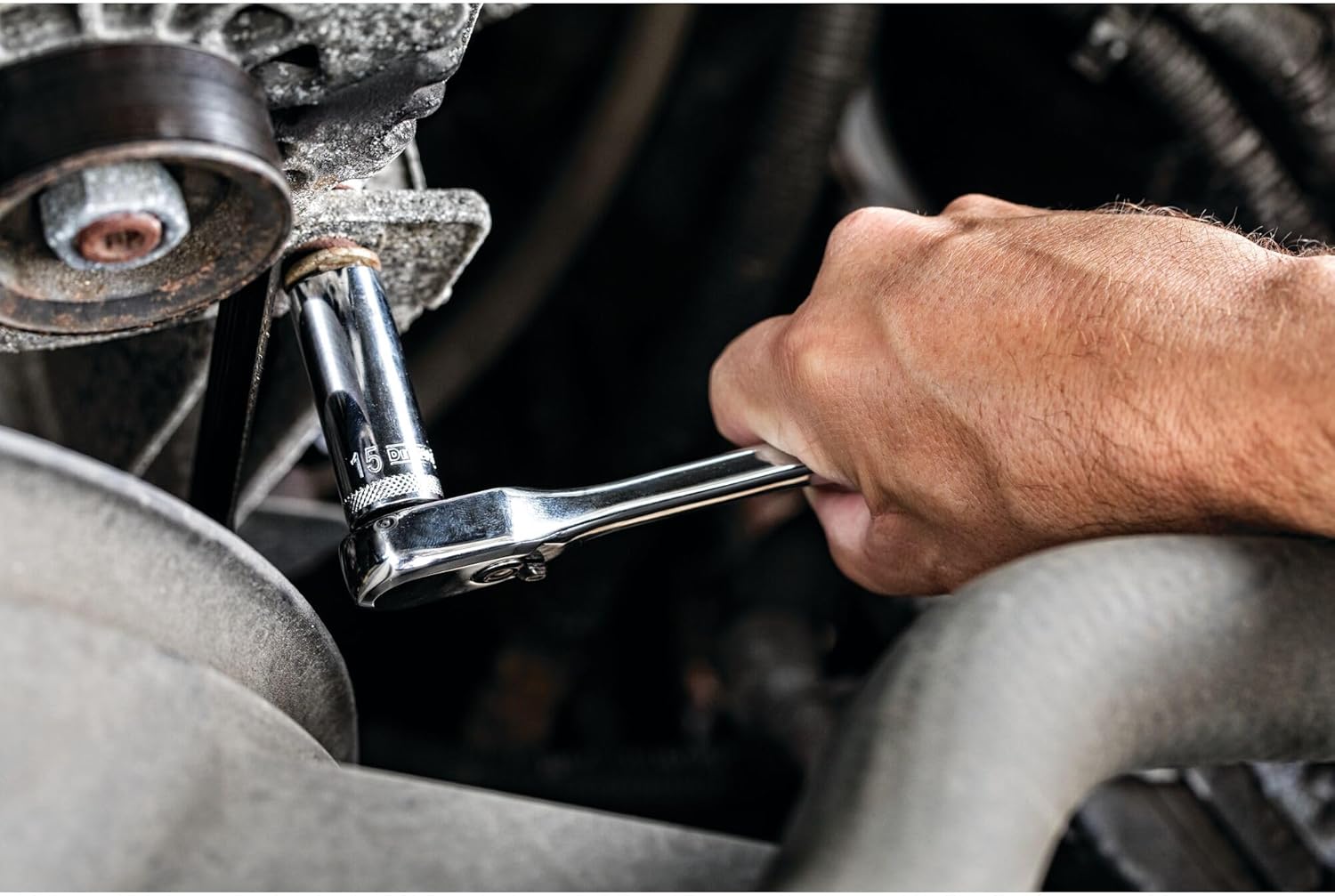 • Anti-slip driver handle on mechanics tool set maximizes comfort during long work days.