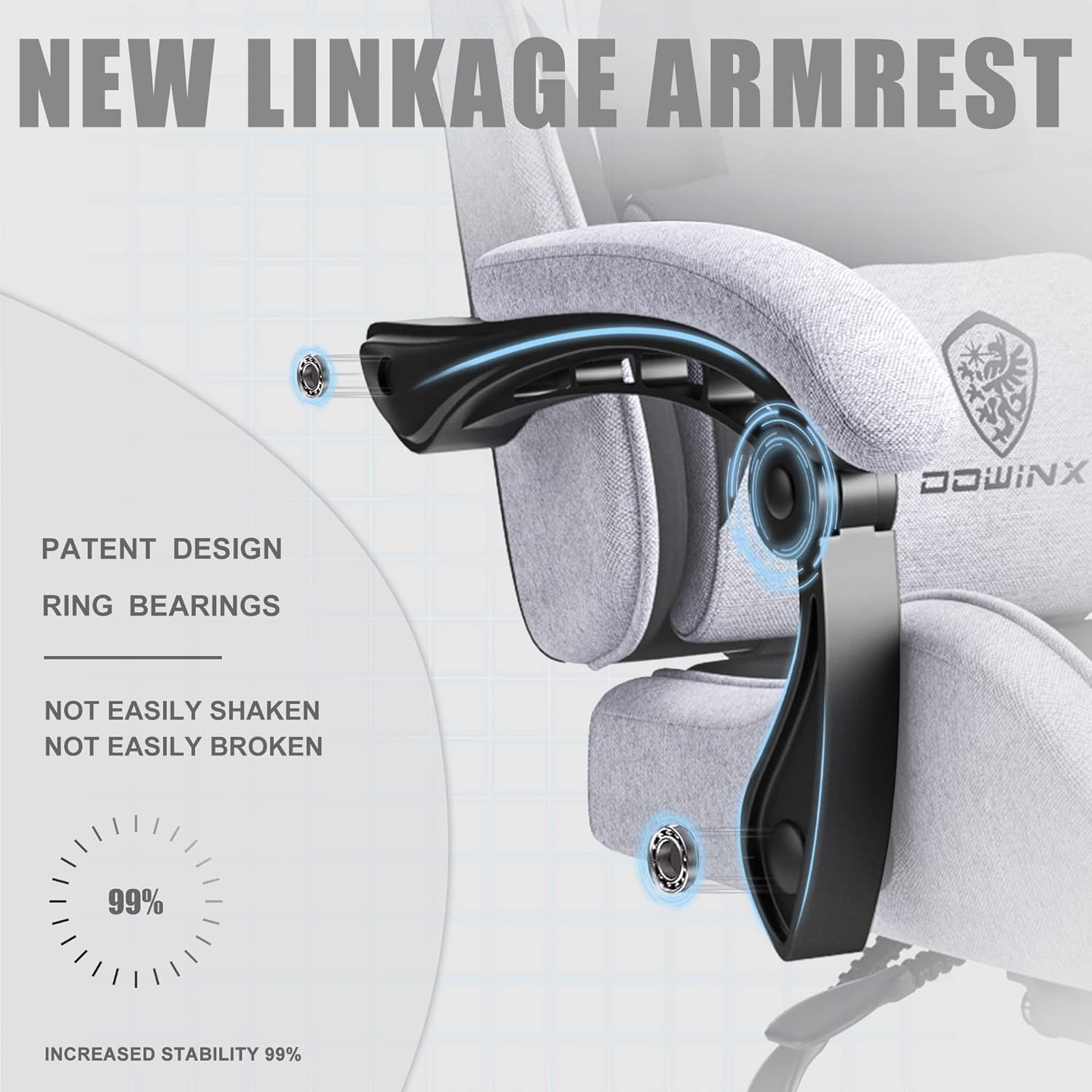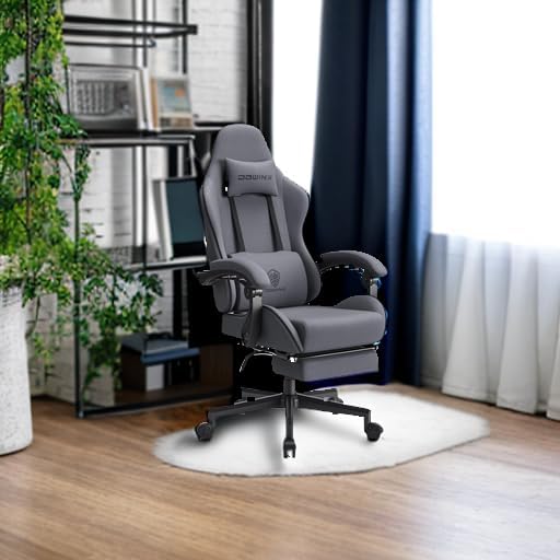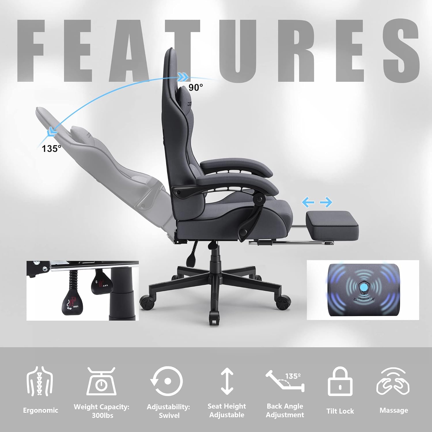 Dowinx Gaming Chair Fabric with Pocket Spring Cushion, Massage Game Chair Cloth with Headrest, Ergonomic Computer Chair with Footrest 290LBS, Blue and Grey