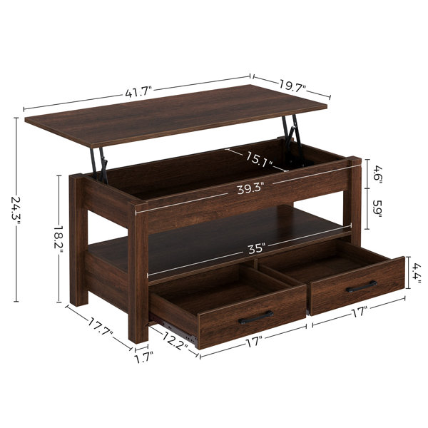 The tabletop can be easily adjusted to a suitable and comfortable height to use a laptop, write, or dine while sitting on the sofa. We added 2 drawers and a large open shelf to keep all the daily items. Millwood Pines Eoghan is crafted of waterproof melamine veneered manufactured wood and metal hardware.