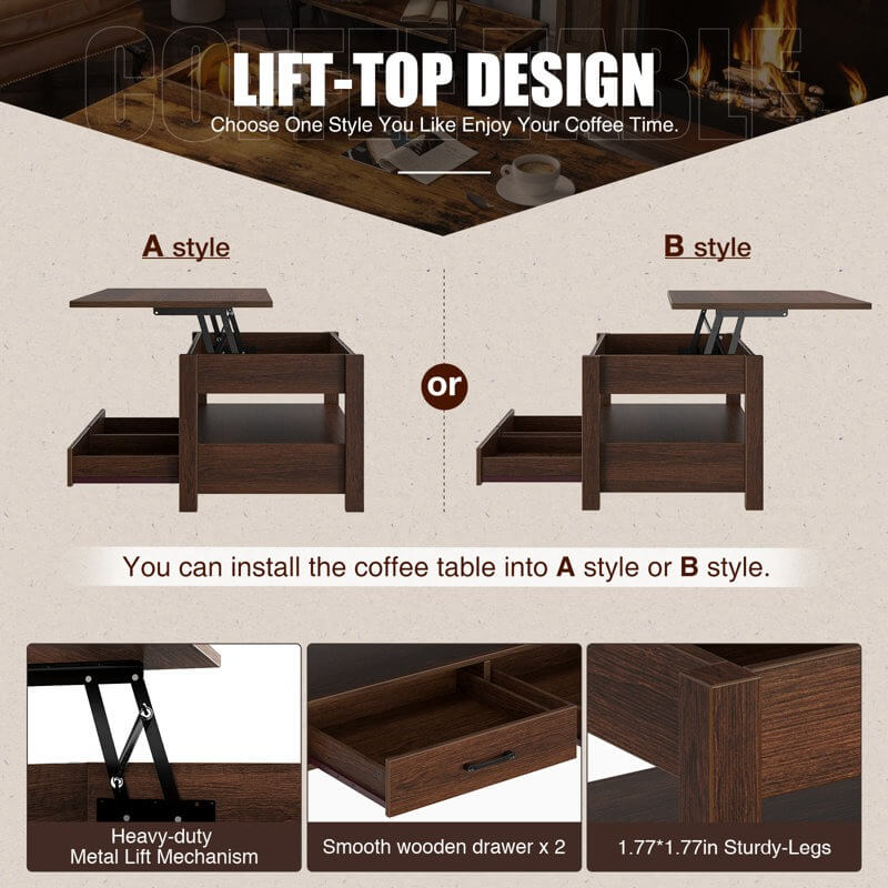 - A hidden compartment beneath the top stores your often-used items like magazines, laptops, chess, etc.