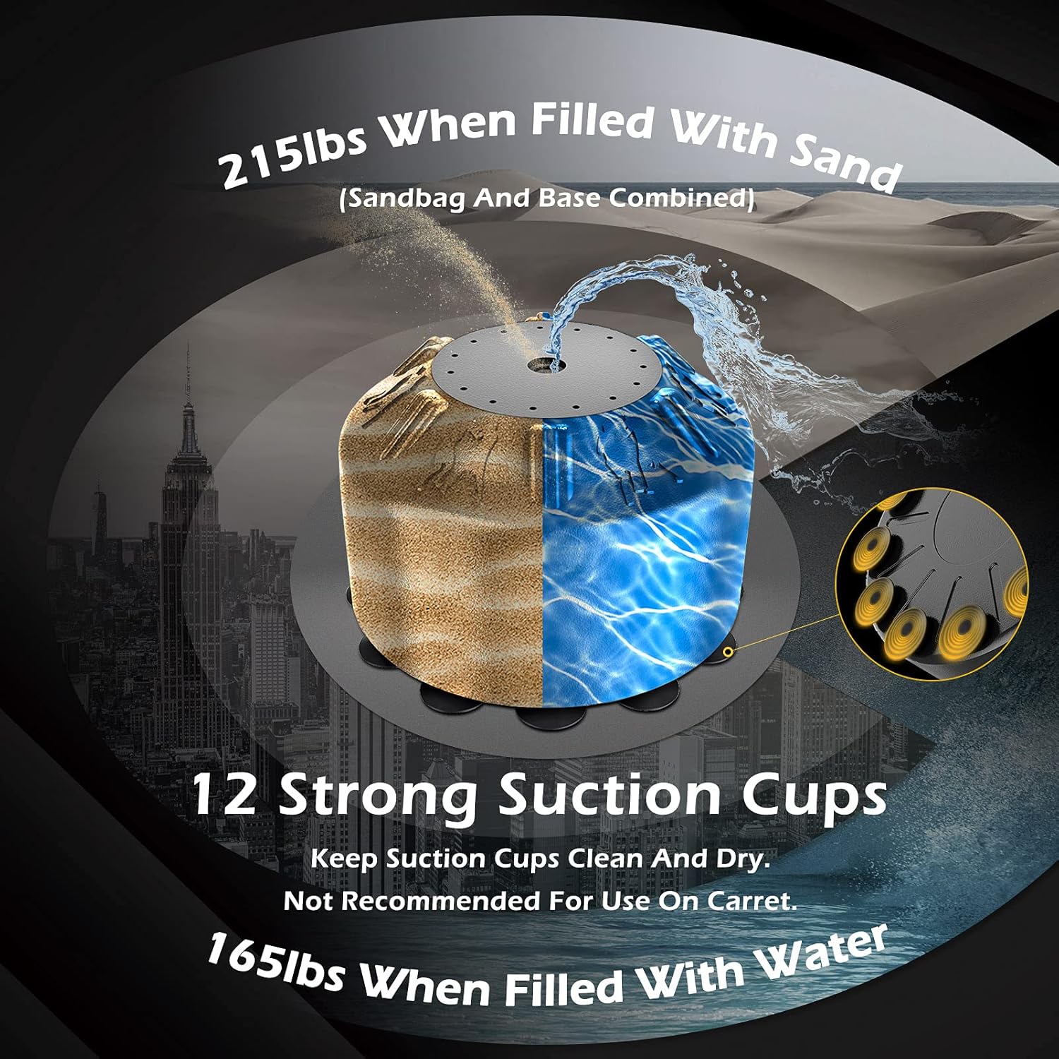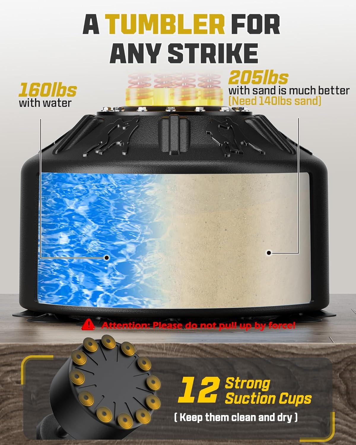 • Stable Sucking Base : 5MM thicken ABS round base with 12 strong suction cups help keep the bag in place on smoonth and even floors. When filled with sand, the base weighs up to 205lbs, ensuring maximum stability during your workouts;