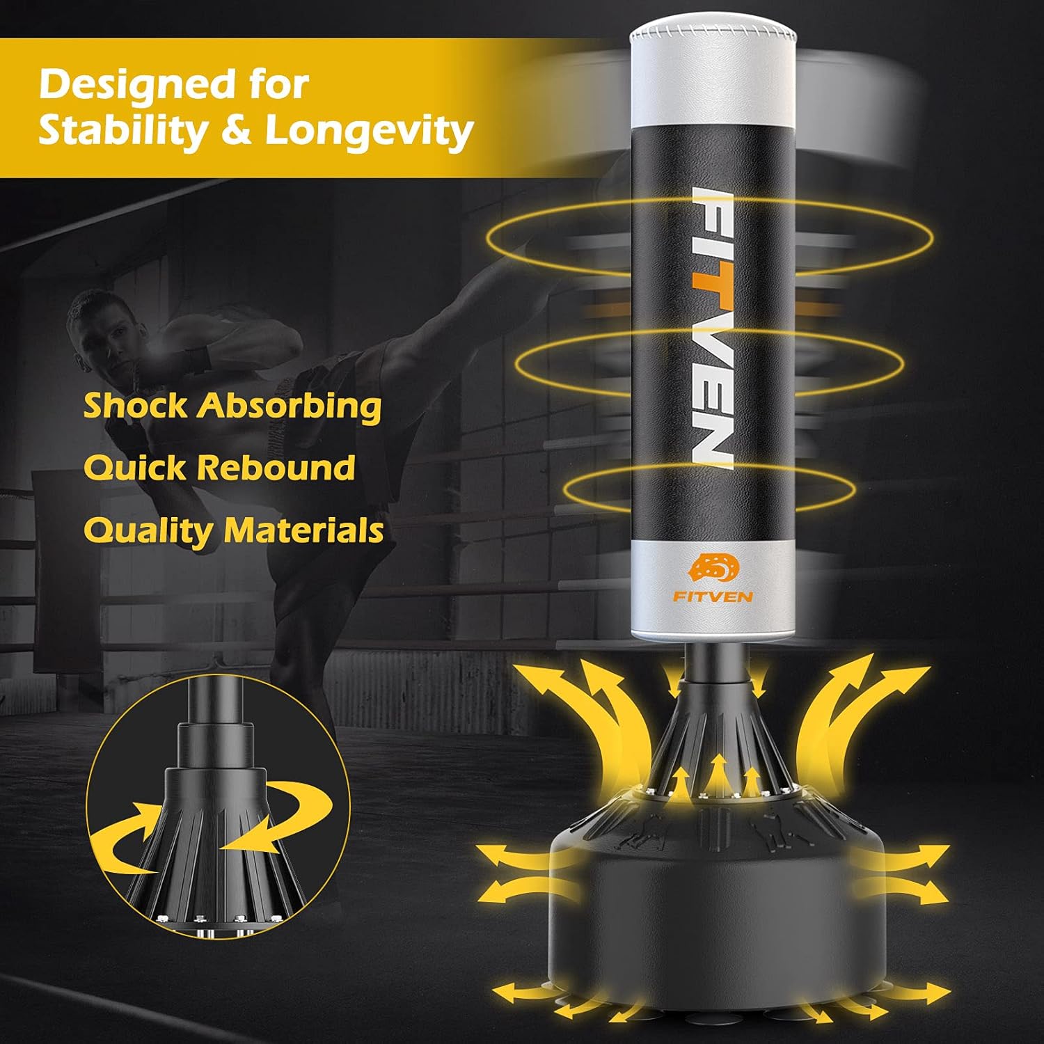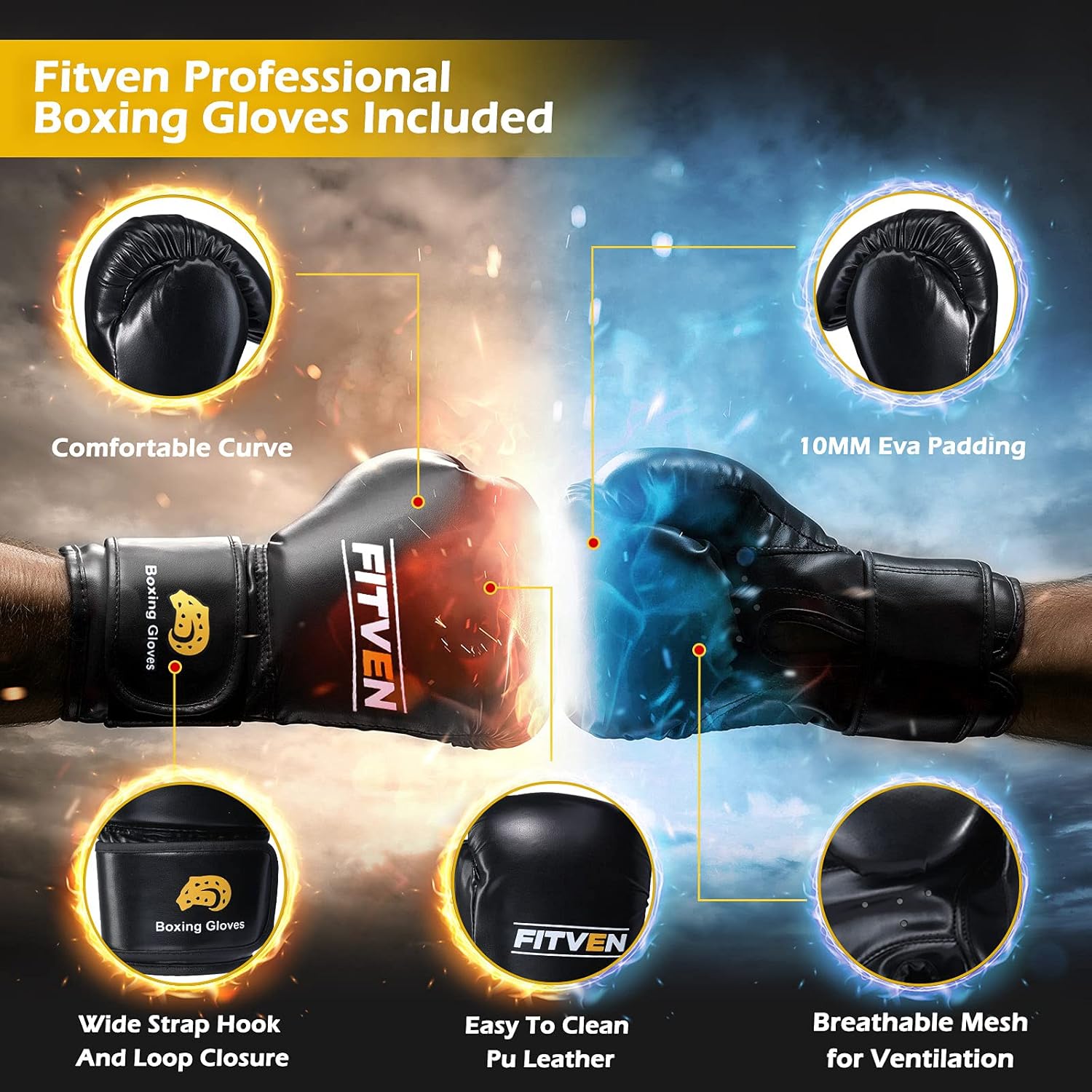 • FITVEN Freestanding Punching Bag with Boxing Gloves Heavy Boxing Bag with Suction Cup Base for Adult Kids - Men Stand Kickboxing Bag