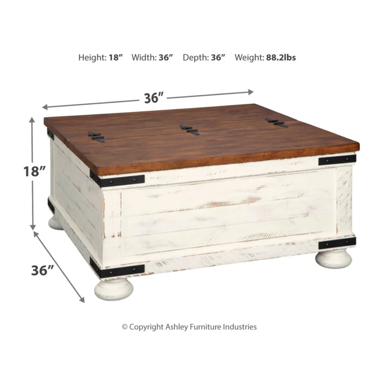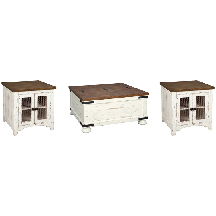 Double take. Sporting a two-tone finish, dual-sided lid design, and expansive storage space, this occasional table set takes the art of rustic farmhouse living to a new level. Designer touches include plank-effect styling, heavy distressing, and industrial bracket hardware.
