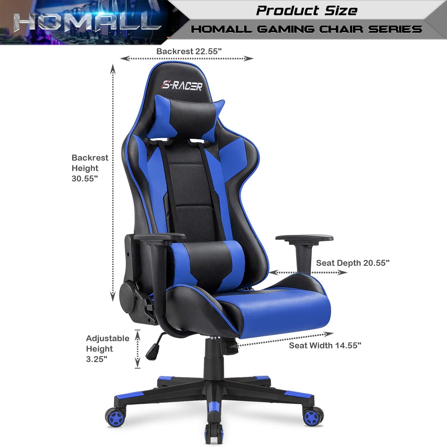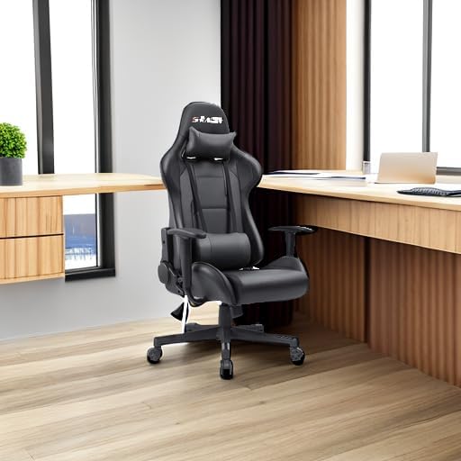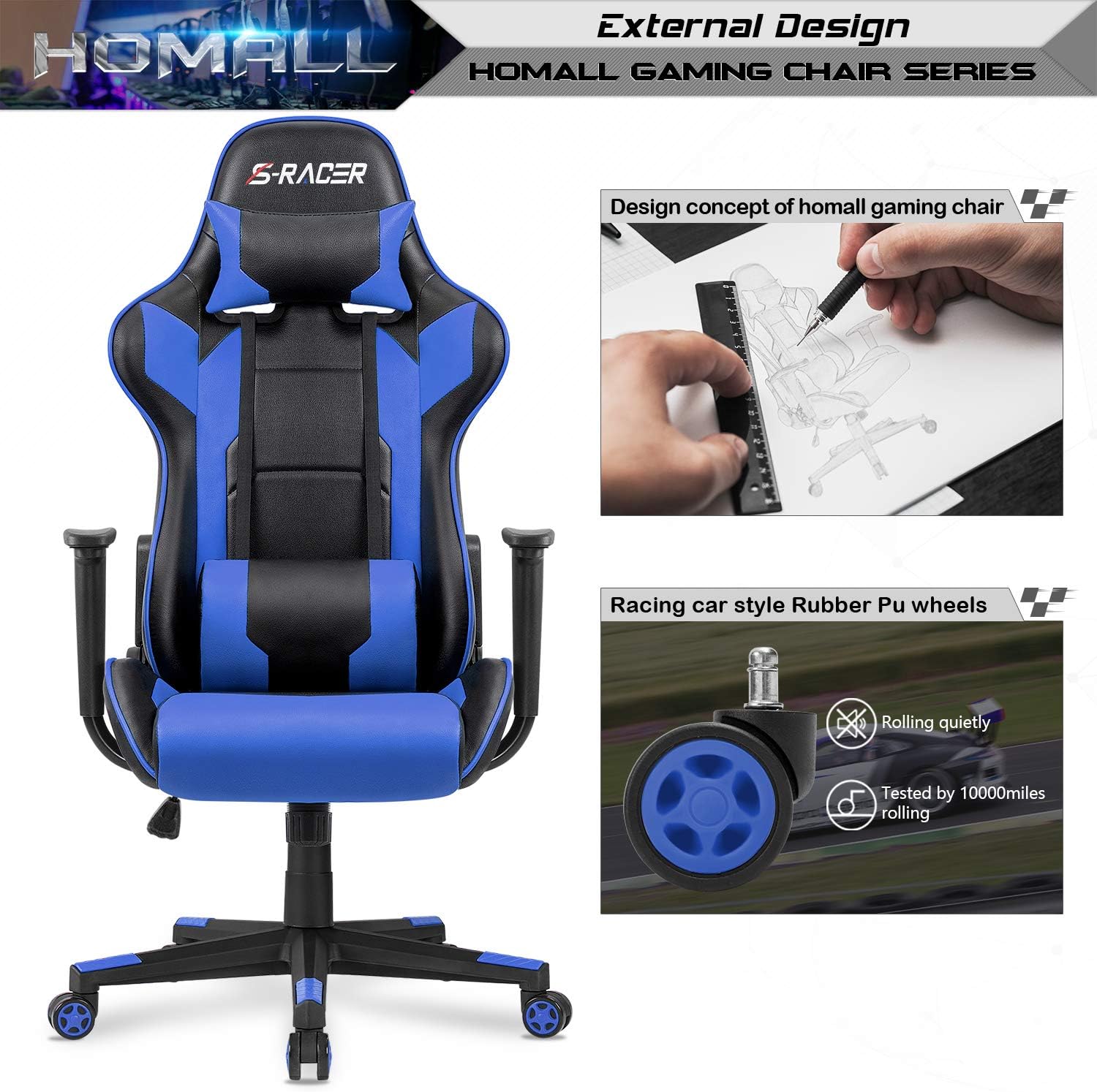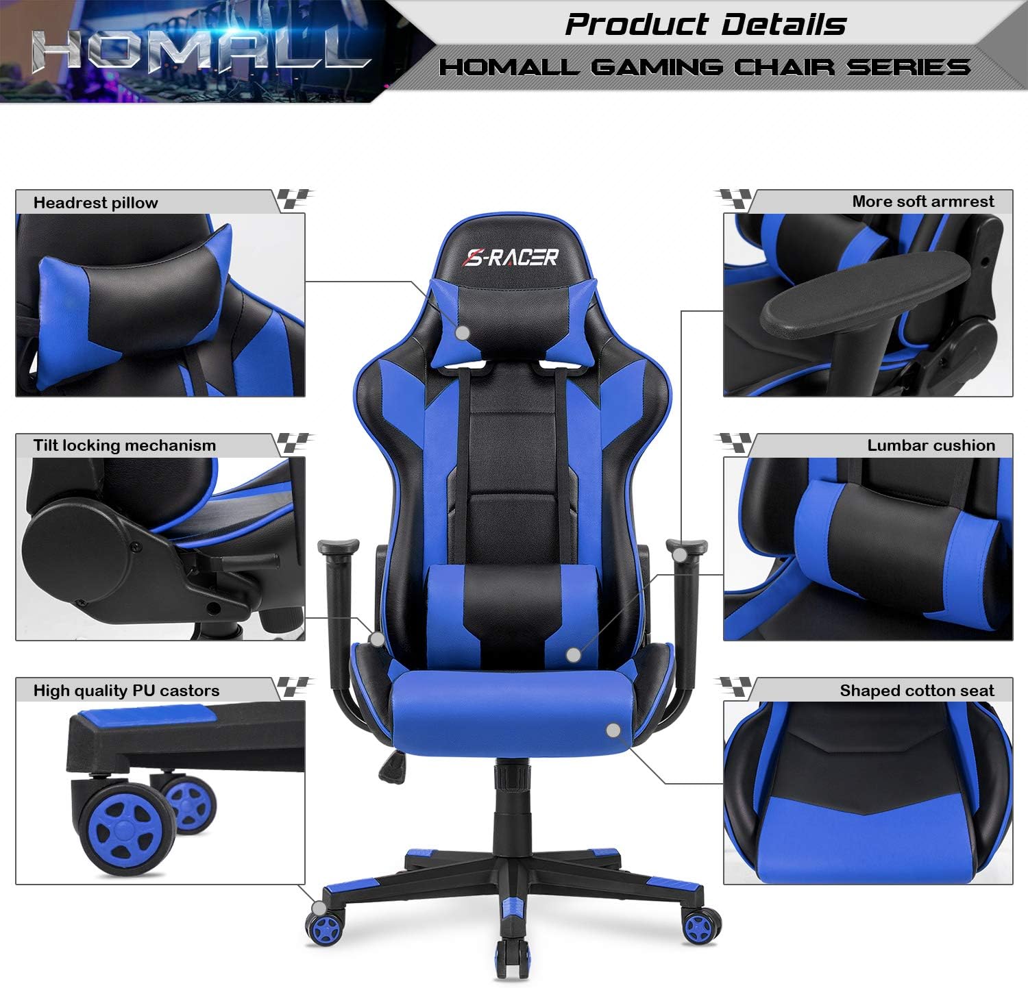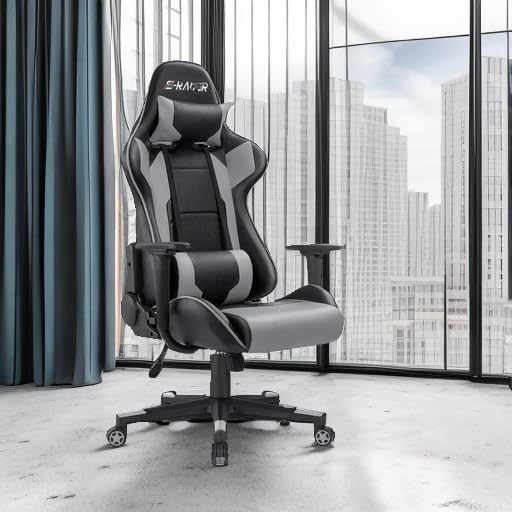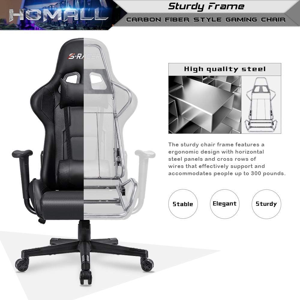 Homall Gaming Chair, Office Chair High Back Computer Chair Leather Desk Chair Racing Executive Ergonomic Adjustable Swivel Task Chair with Headrest and Lumbar Support (Dark Black)