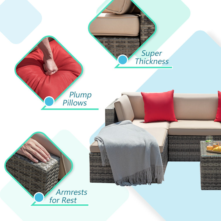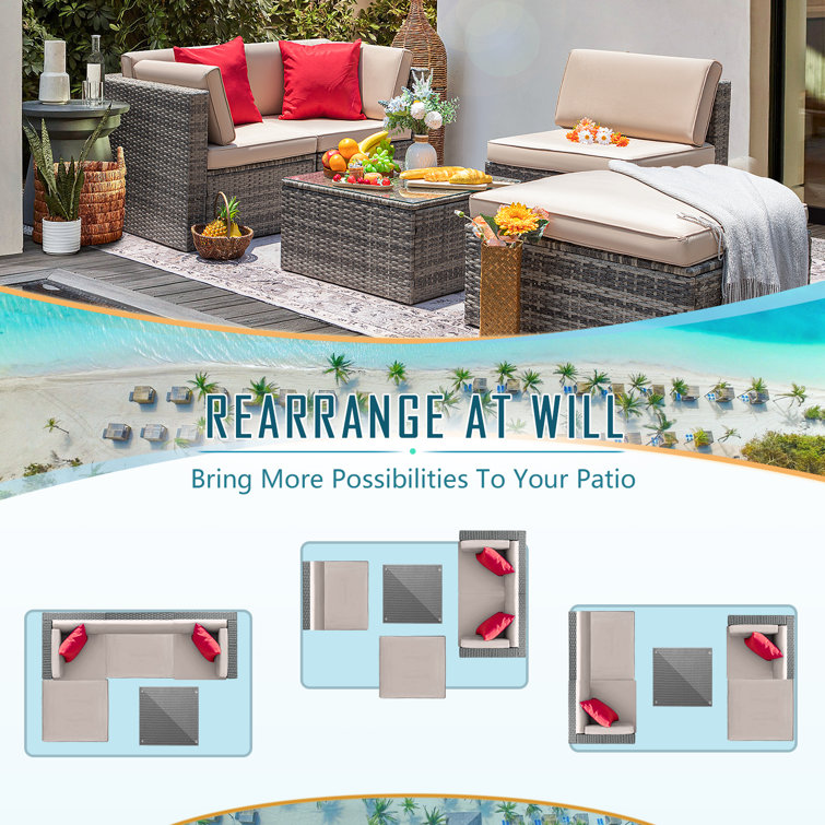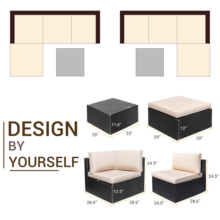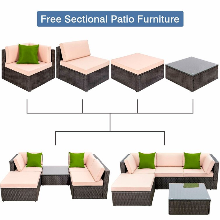 - Sectional and suitable: Patio furniture sectional sofa sets freely rearranged into different combination for different occasion, widely used for outdoor patio, porch, backyard, balcony, poolside, garden, and other suitable space in your home