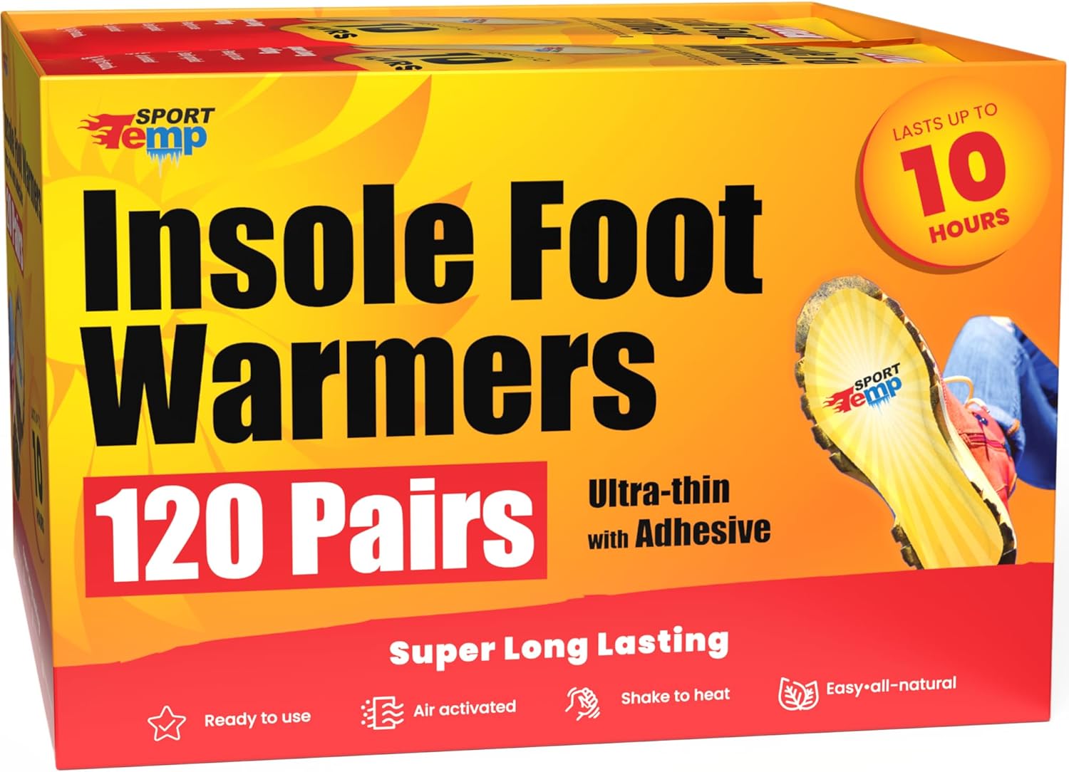 Insole Foot Warmers - Up to 10 Hours of Heat, Easily Apply with Adhesive - Ultra Thin, Easy, All Natural - Air Activated, Odorless Hot Insole Warmers - Sport Temp