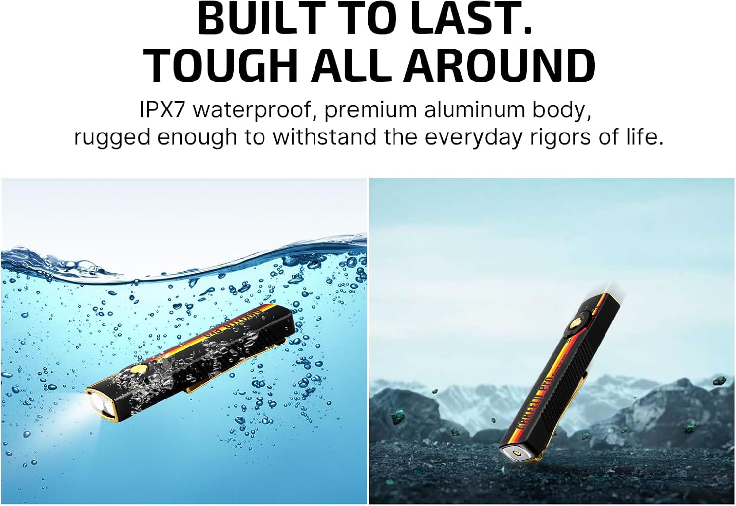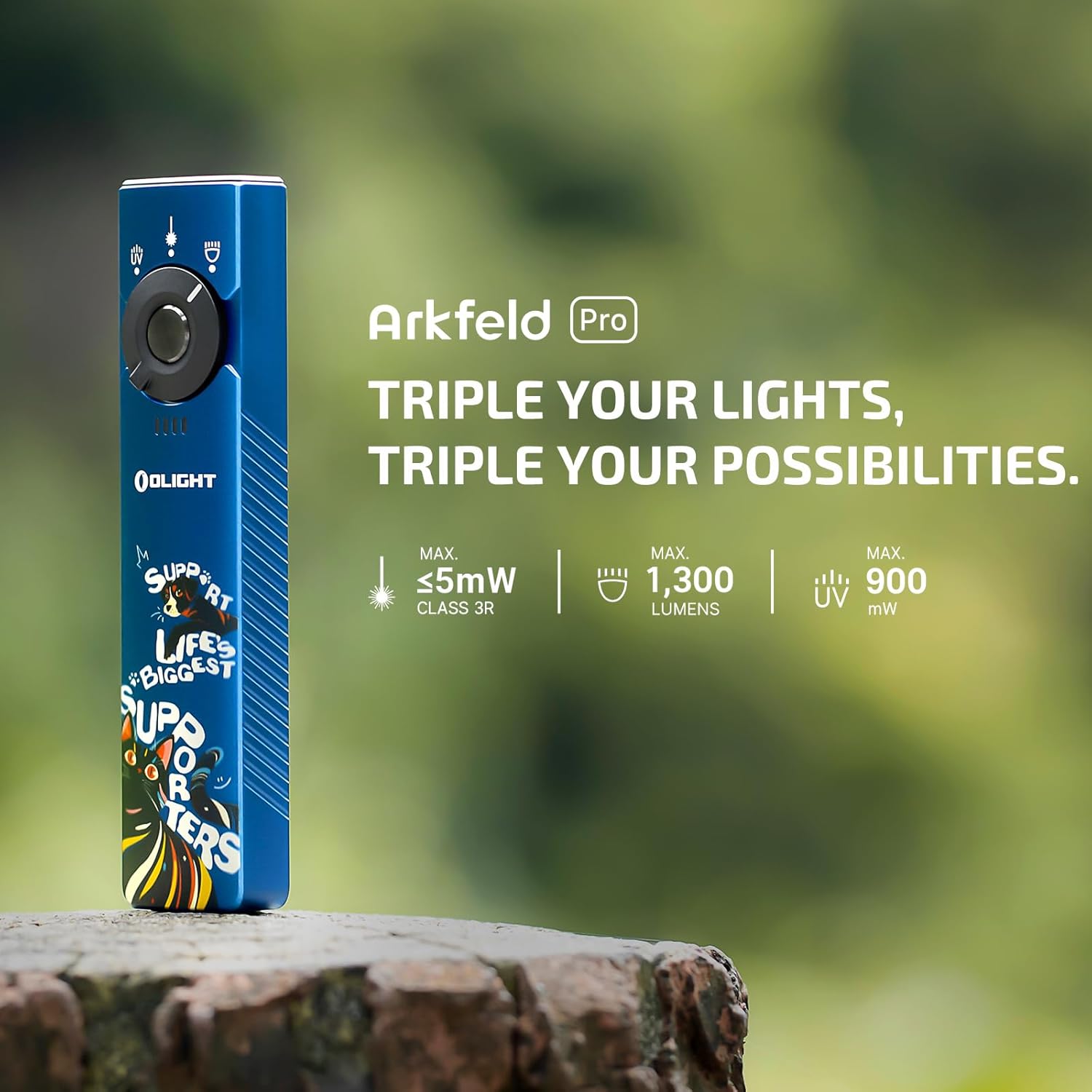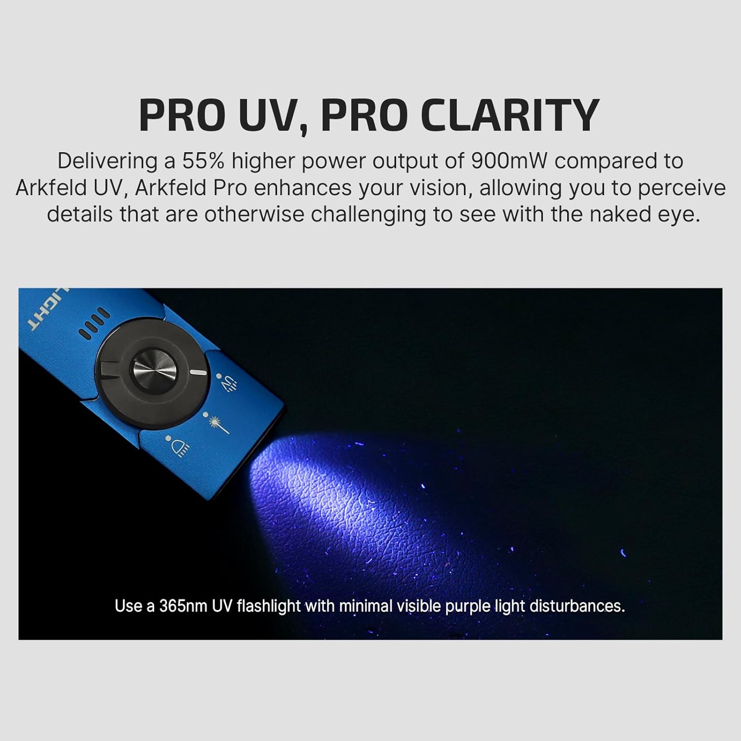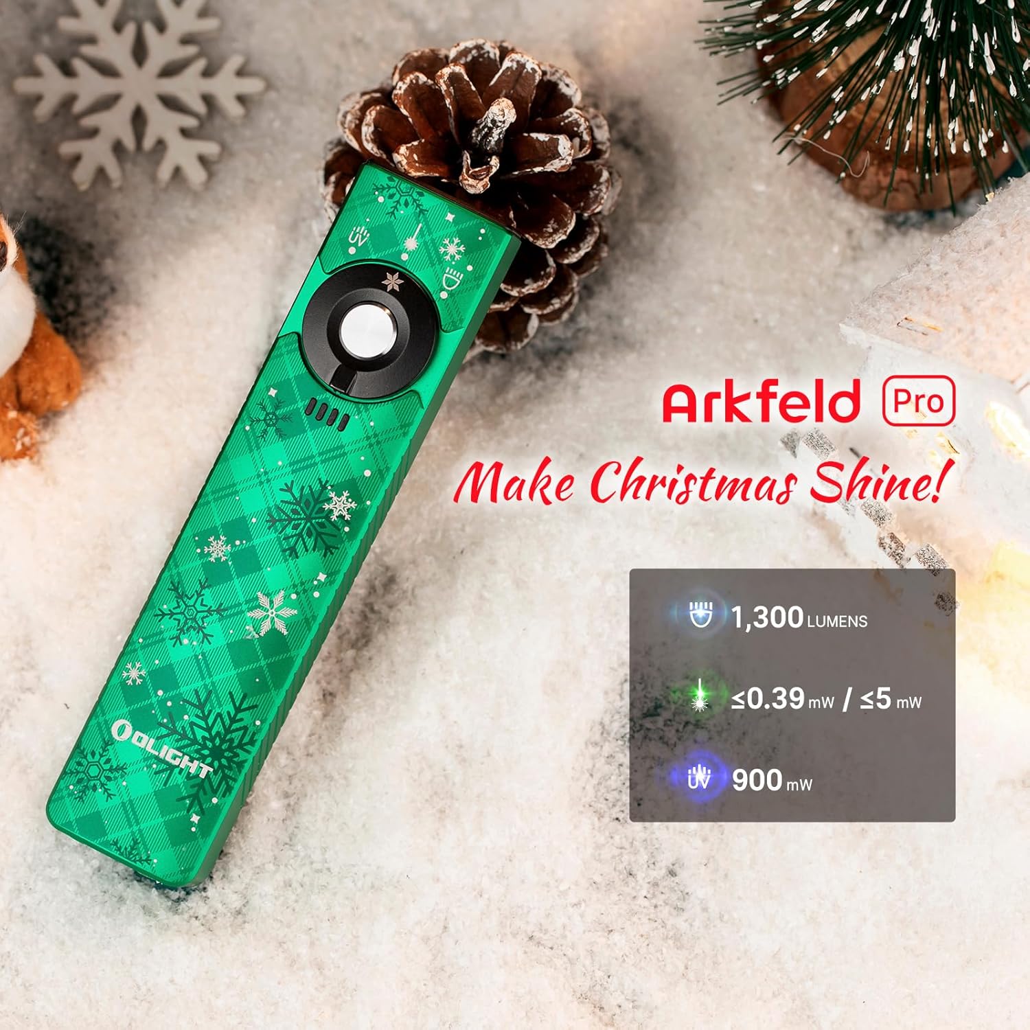 - [Three-in-One Functionality] Provides an impressive maximum brightness of 1300 lumens for excellent illumination. Arkfeld pro combines white light, UV, and green beam in a single flashlight, offering versatility for a wide range of applications