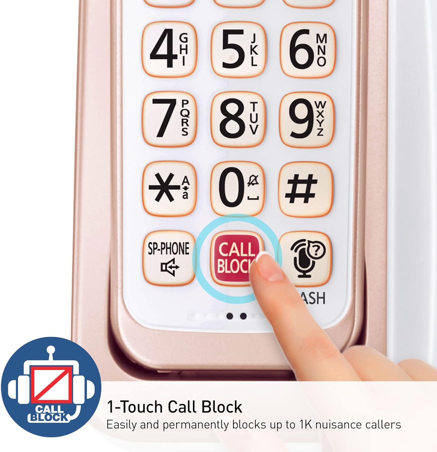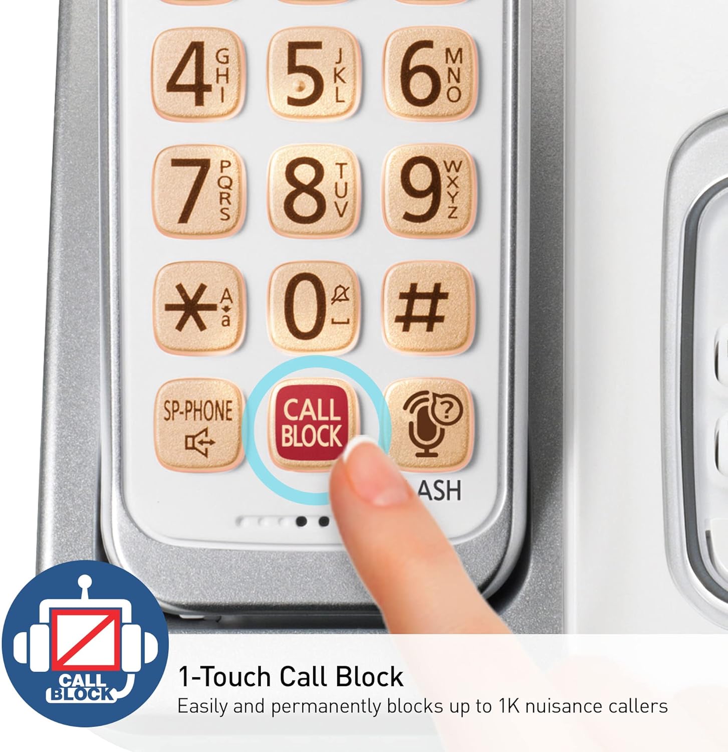 - Advanced Call Blocking: Automated Call Block pre-blocks robocalls; Telemarketing Call Block lets you to block announced callers; block 1,000 more with 1-touch Call Block Button on the handset