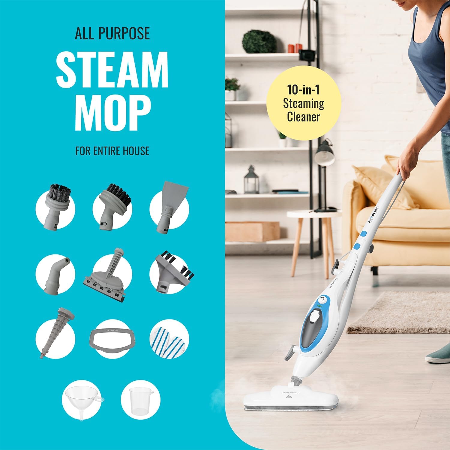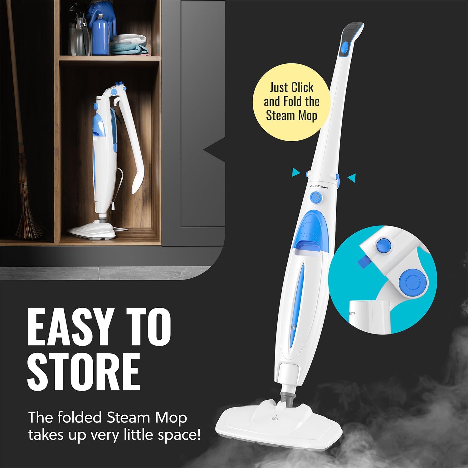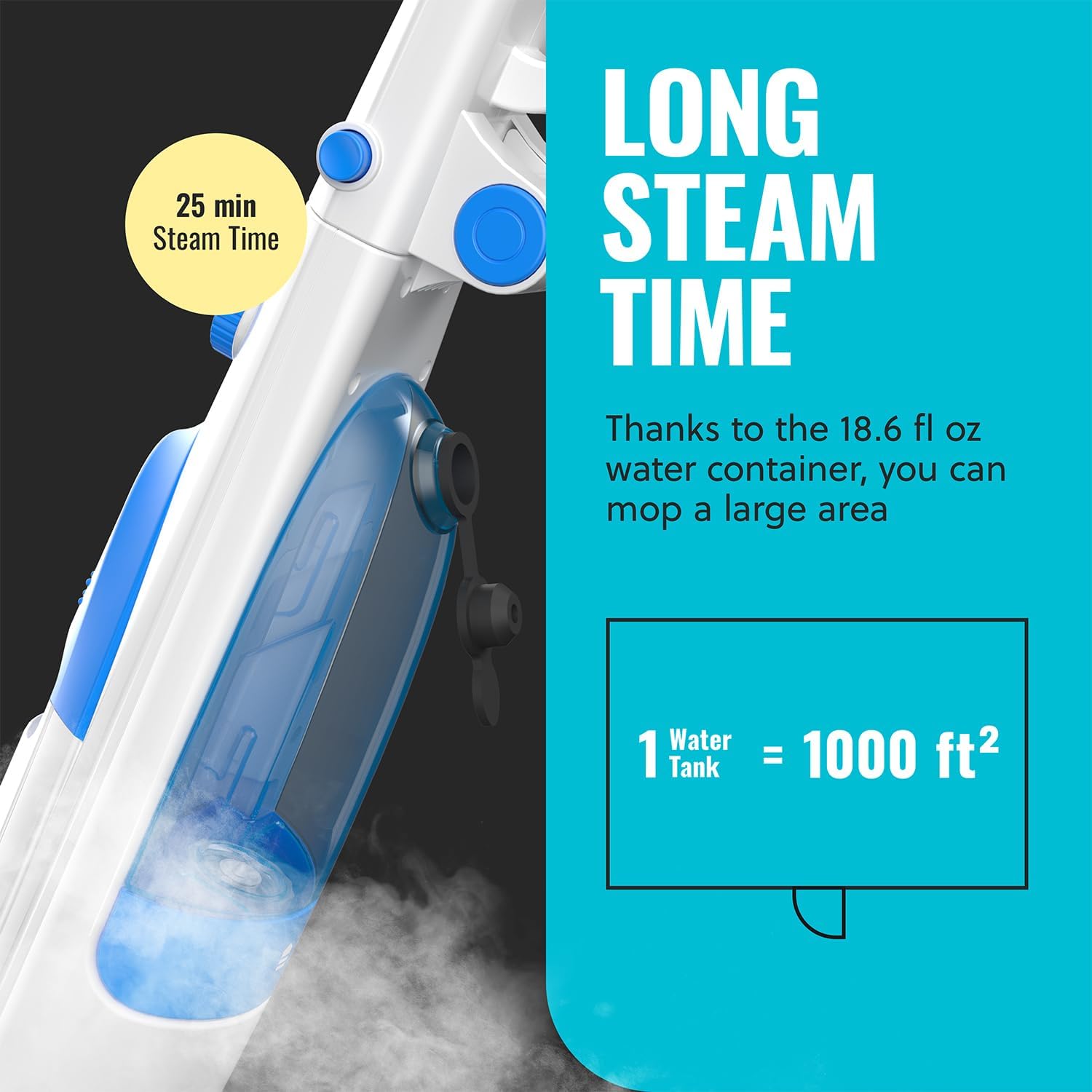 - Convenient Cable Holder & Upright Lock – Designed for user-friendly storage, this steam mop includes a cable holder to prevent tangles and an upright lock for easy, compact storage after cleaning.