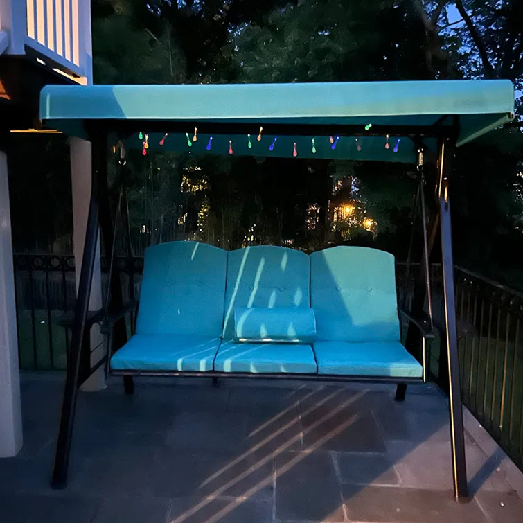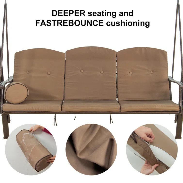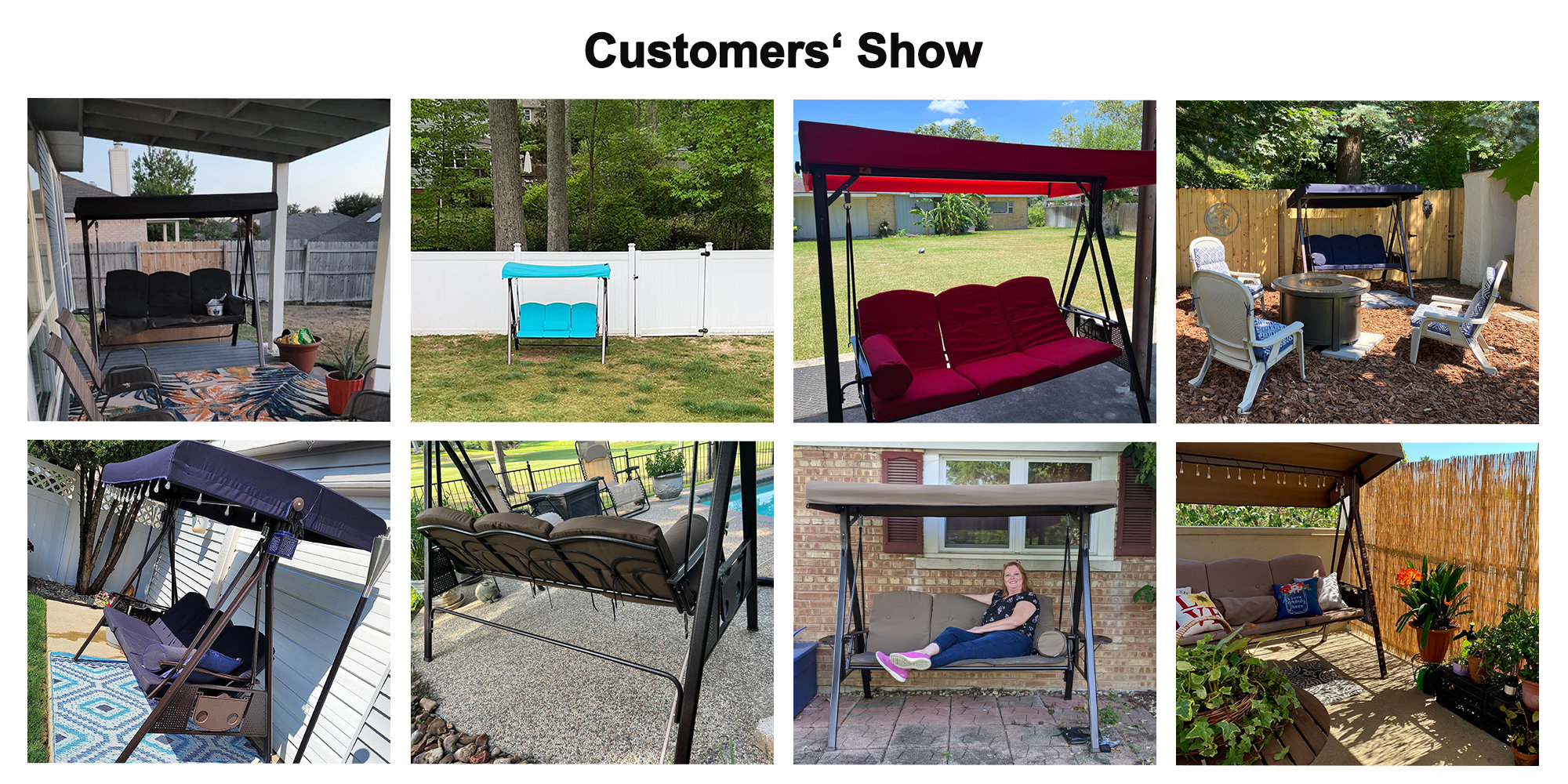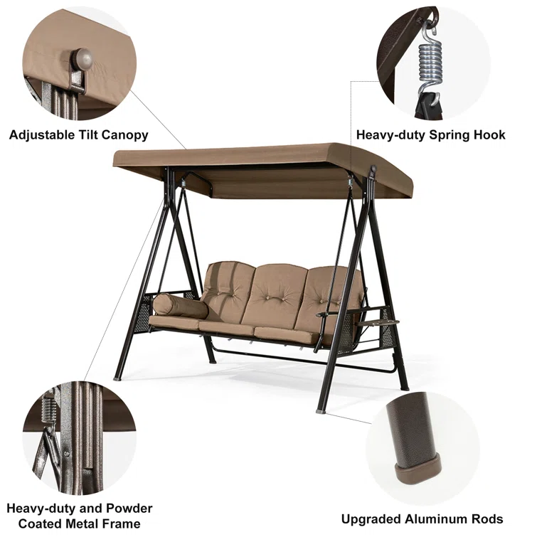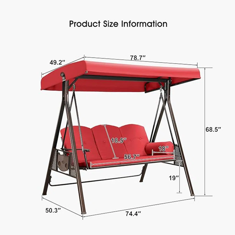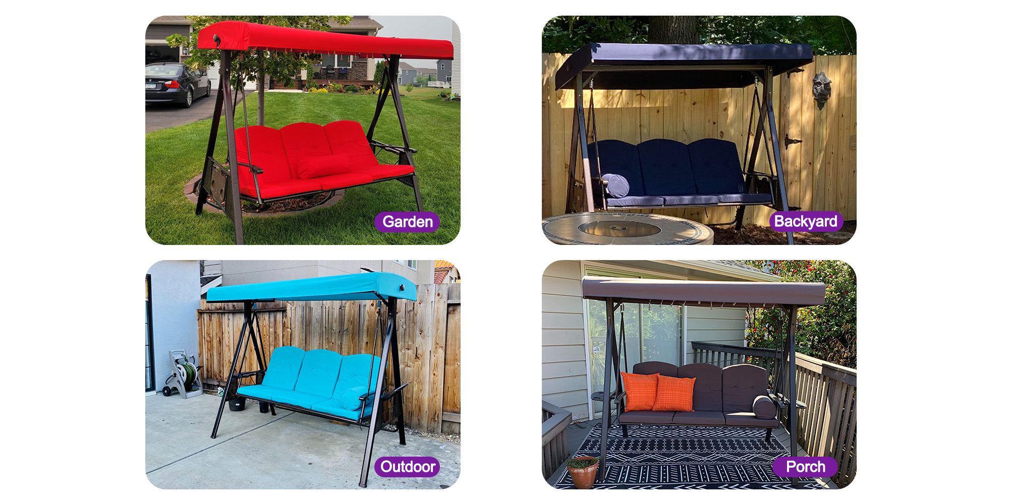 - 【Quality & Safety 】-we made 750lbs( for three seats) bearing VS market 450lbs. This outdoor porch swing uses heavy duty thickened metal tubing with an eco-friendly anti-rust coating. 4 Foot pads make the patio swing more stable by increasing the friction on the ground.