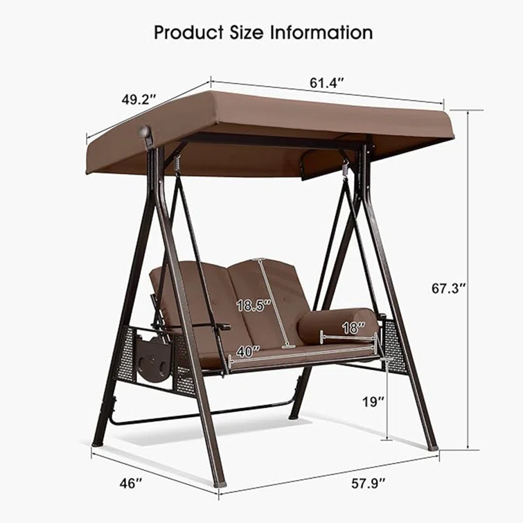 - 【Convenient Cup Holder & Plush Comfort with Padding】- On both sides of the porch swing, the cup holders are designed to place cups, phones. For upgrade comfort, porch swing gives you thickened seat cushion. You will enjoy a comfortable seating experience on outdoor swing.