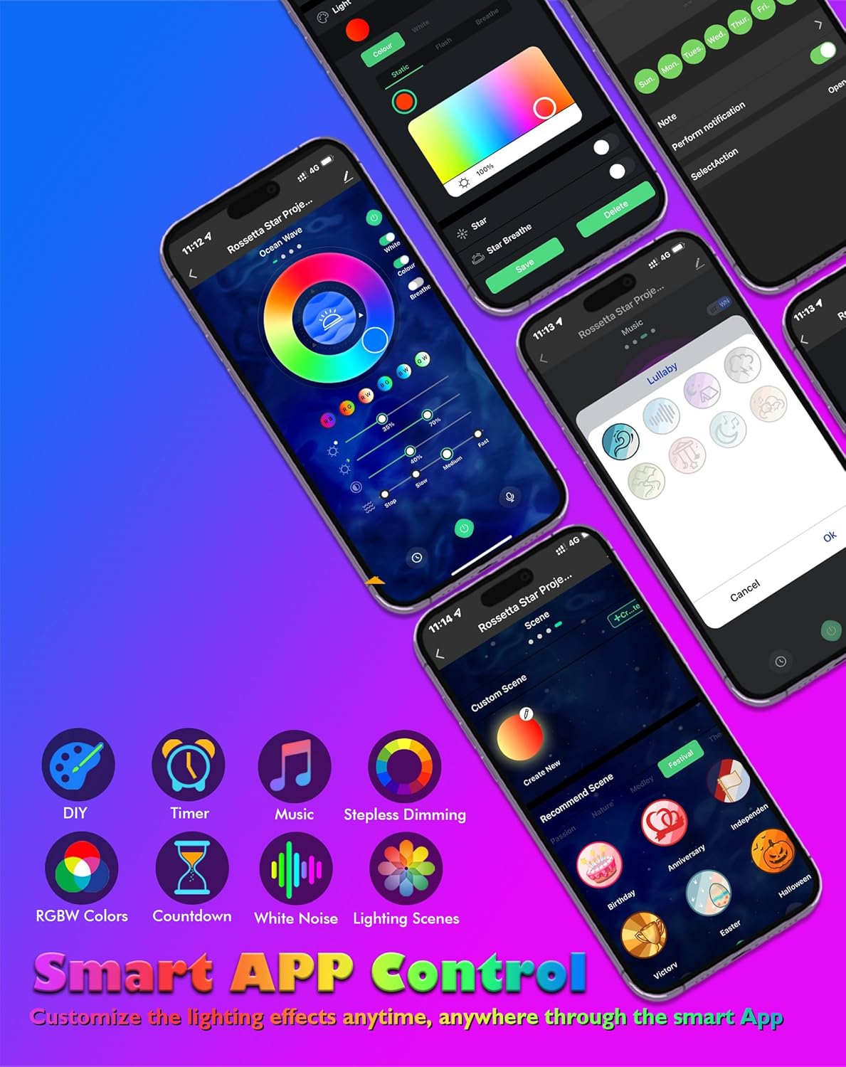 - Next-Gen 4 in 1 Galaxy Projector Night Light - Rossetta's next generation star projector combines an aurora projector, nightlight lamp, white noise machine, and music player all in one device. With its industry-changing design featuring a new way of projecting gleaming stars and mesmerizing auroras, the starlight projector brings the vast star lights skies indoors, allowing you and your children to enjoy the beauty of space in the comfort of your home.
