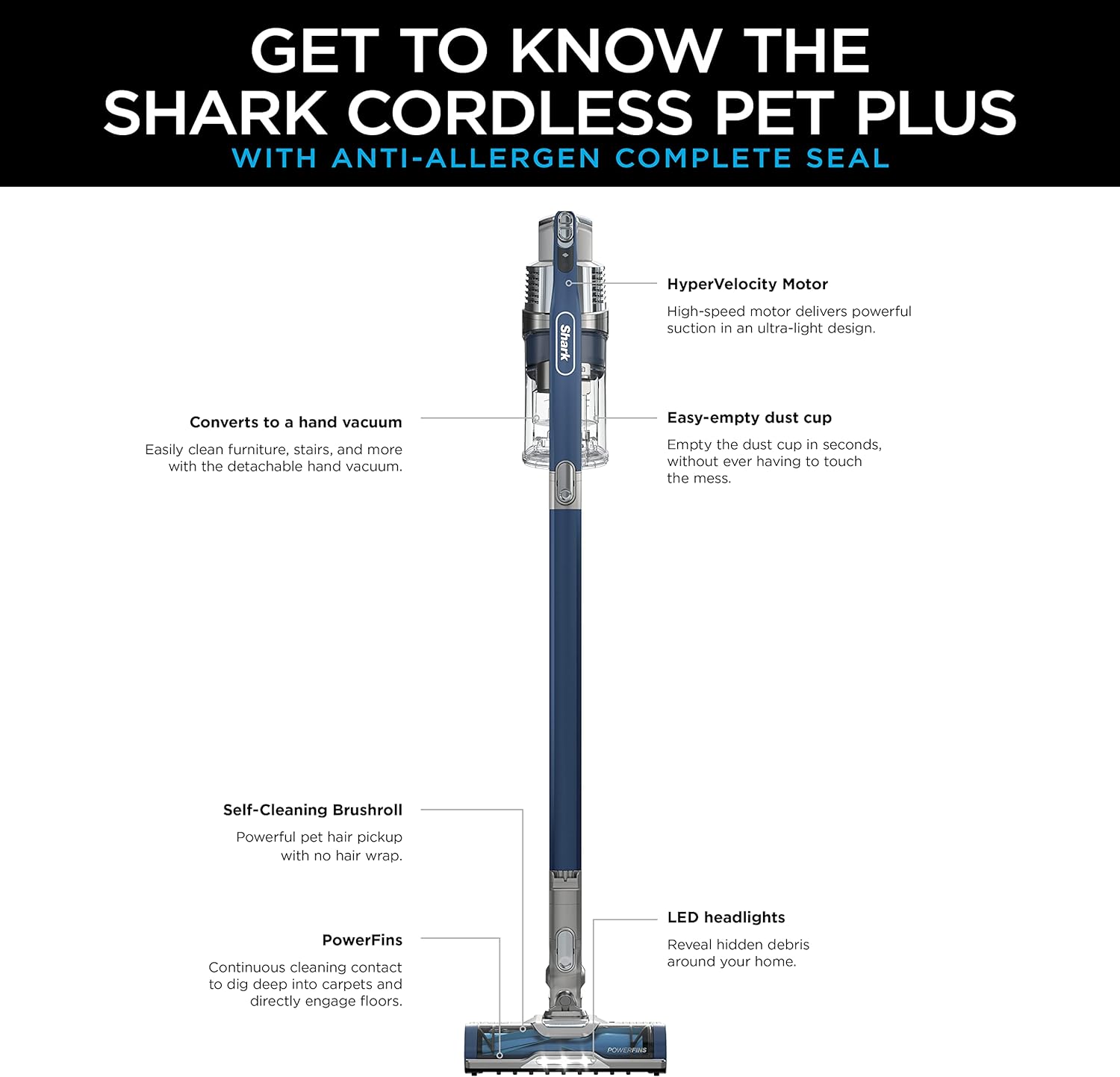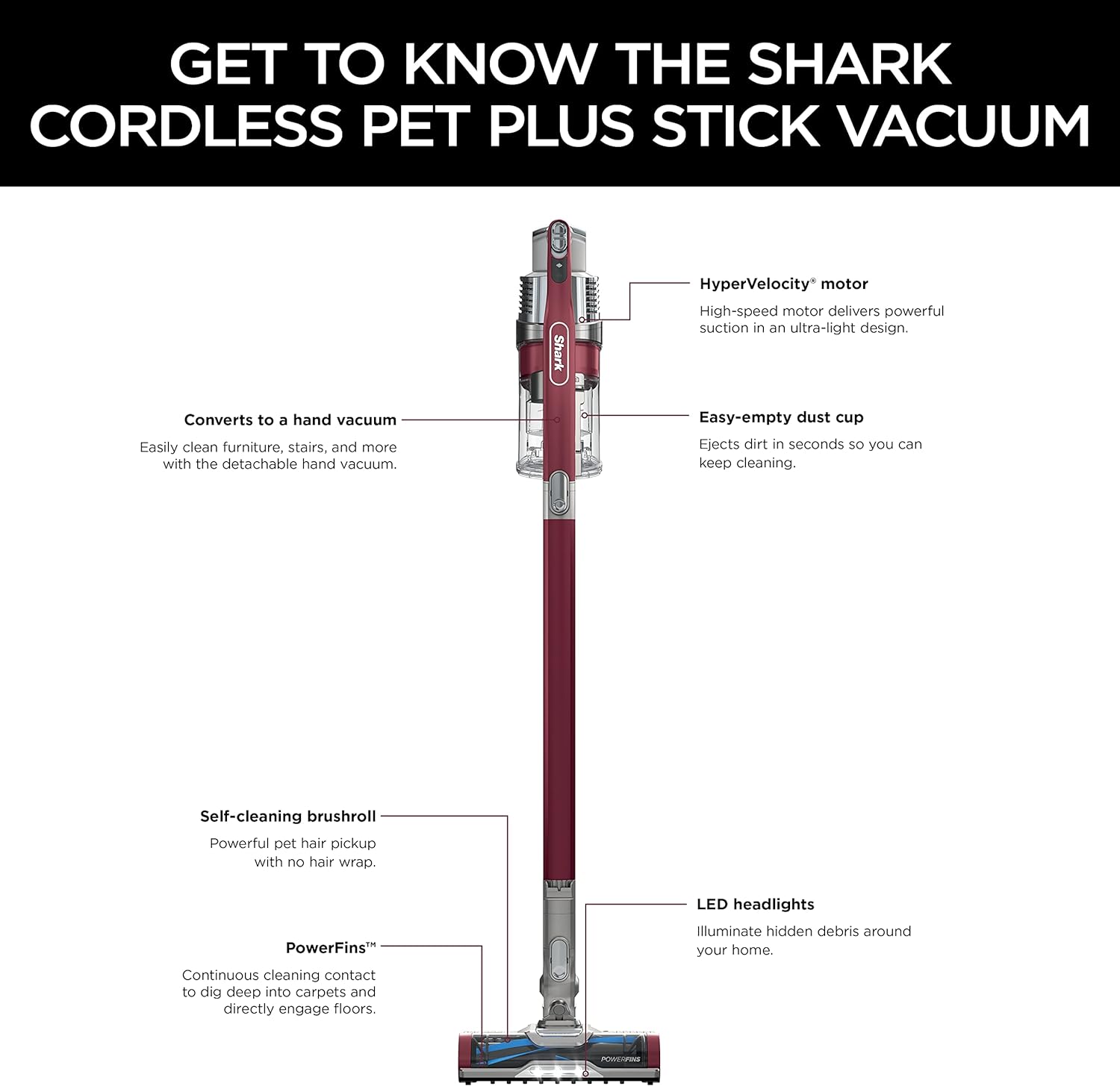 Shark Pet Cordless Stick Vacuum with XL Dust Cup, LED Headlights, Removable Handheld Vac, Crevice Tool, Portable Vacuum for Household Pet Hair, Carpet and Hard Floors, 40min Runtime, Grey, IX141