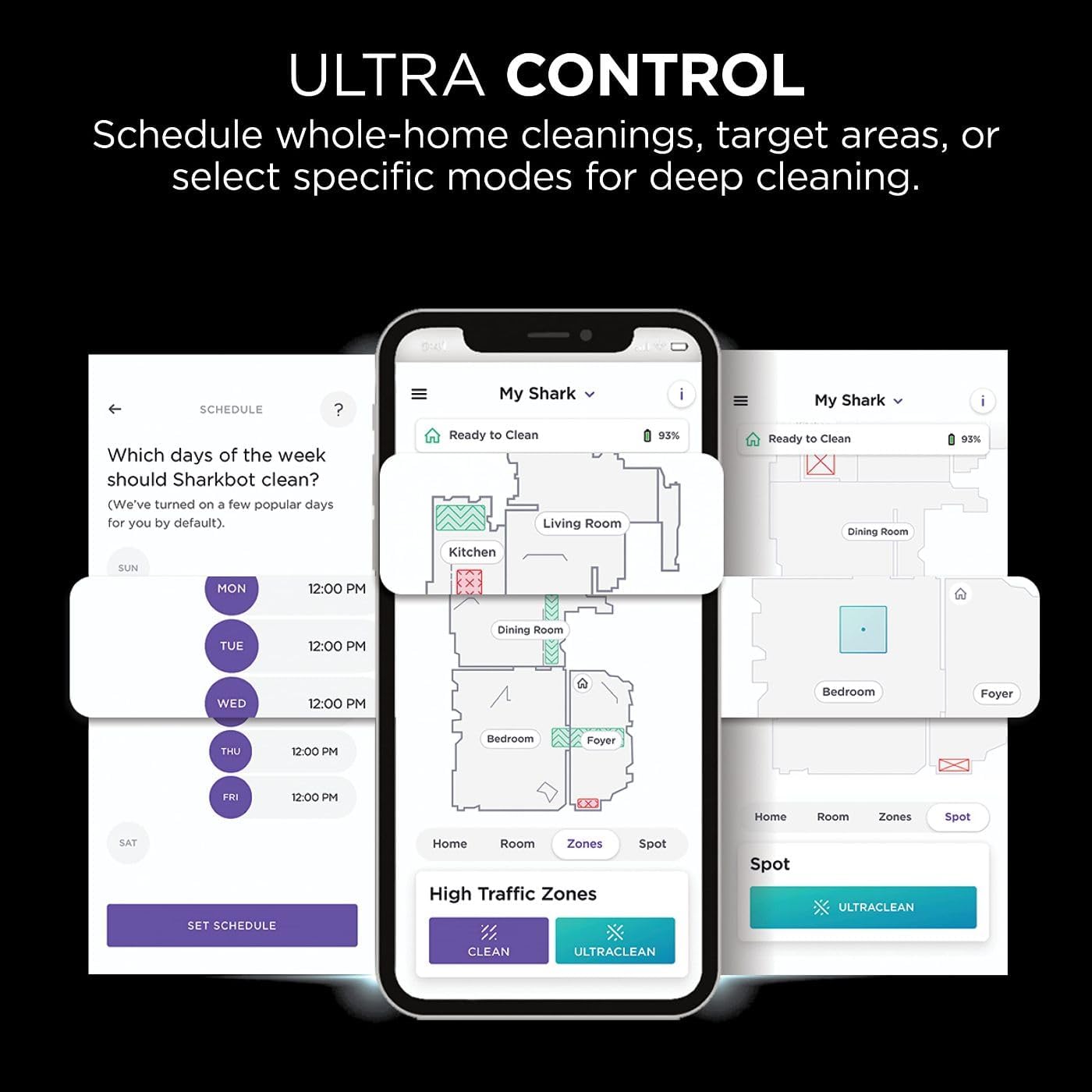 - PHONE OR VOICE COMMAND: Schedule whole-home cleanings or target specific rooms or areas to clean right now with the SharkClean app or voice control with Amazon Alexa or Google Assistant.