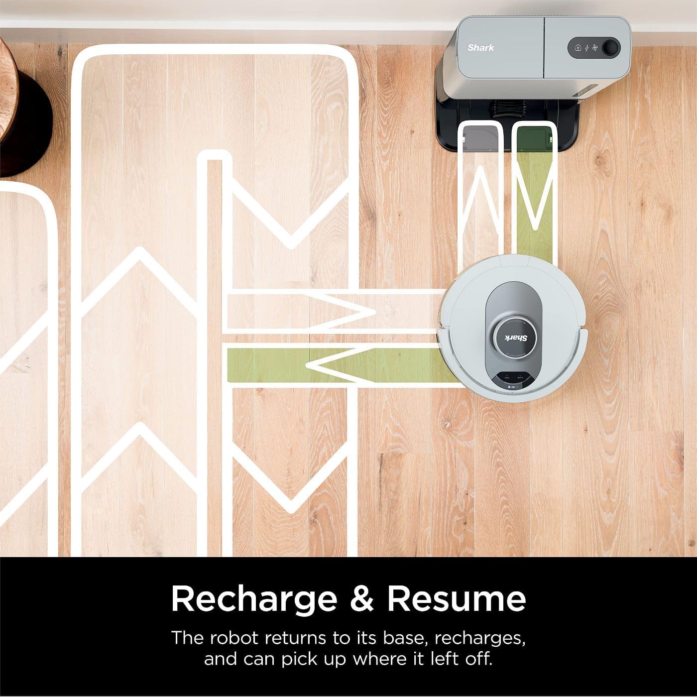 - RECHARGE AND RESUME: The Shark IQ Robot vacuum will return to the dock, recharge, and can pick up where it left off.