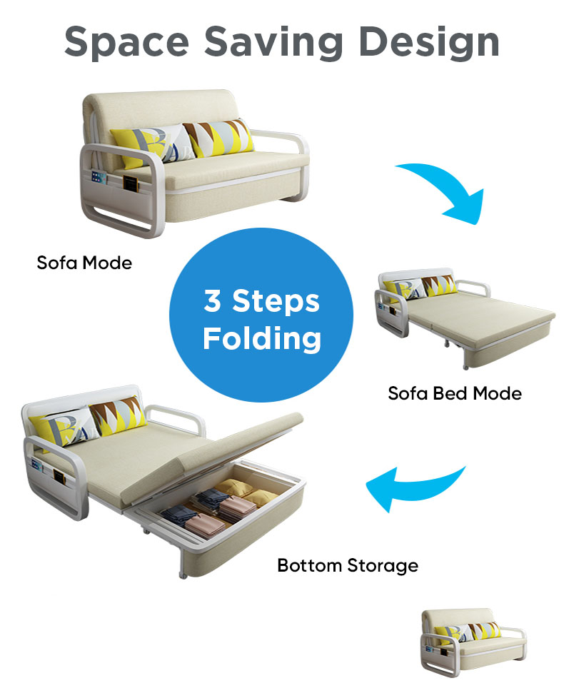 Comfortable The sofa bed is designed to meet different sitting postures, and this foldable sofa is comfortable for lying or sitting upright. Upholstered with linen fabrics, it is light and relaxed when sleeping.