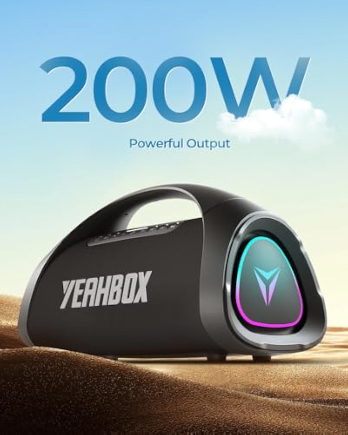 - 300W Peak 200W RMS Deepest Dynamic Bass: The massive 300W peak allows Sonic boom max bluetooth speaker loud to deliver extreme dynamic and powerful bass and treble, providing an immersive listening experience. A robust 200W RMS ensuring high-quality massive sound reproduction over extended periods without distortion. The Sonic boom max loud bluetooth speaker performance remains strong regardless whether it's in battery mode or plugged in. Sonic boom max bluetooth speaker loud is desirable for professional music studio, large party, gathering, movies or games