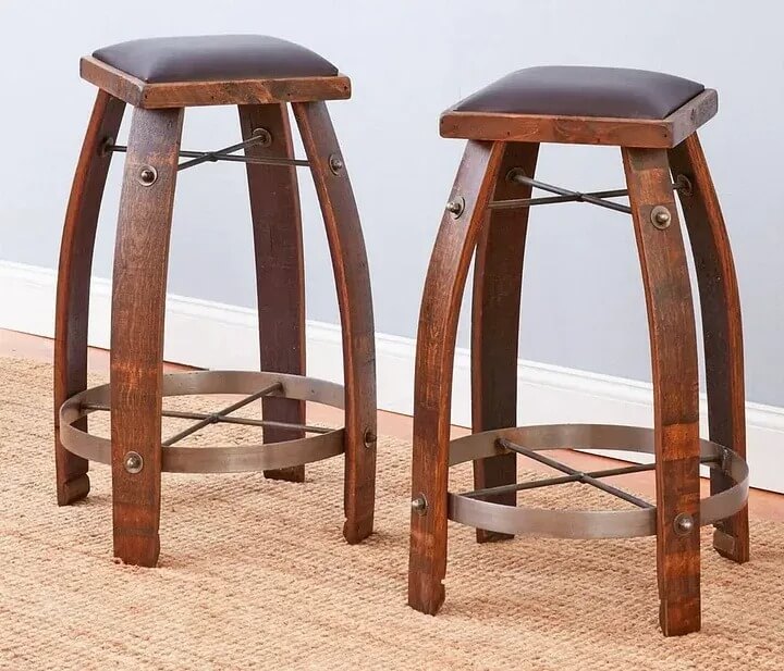 The Ultimate Wine Barrel Table, as we have so aptly dubbed it, has a few extra features on top of the hidden storage inside that make it truly the ultimate table, including an extended top area that provides more surface area for your drinks and snacks (along with even more storage underneath the tabletop), a wrought iron foot rail around the bottom to rest your feet on, along with a new whiskey finish that gives it a beautiful look wherever it is placed.