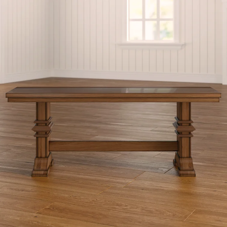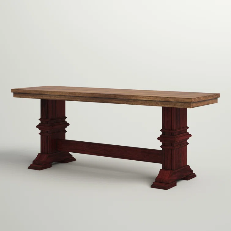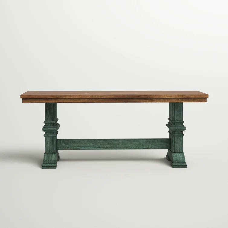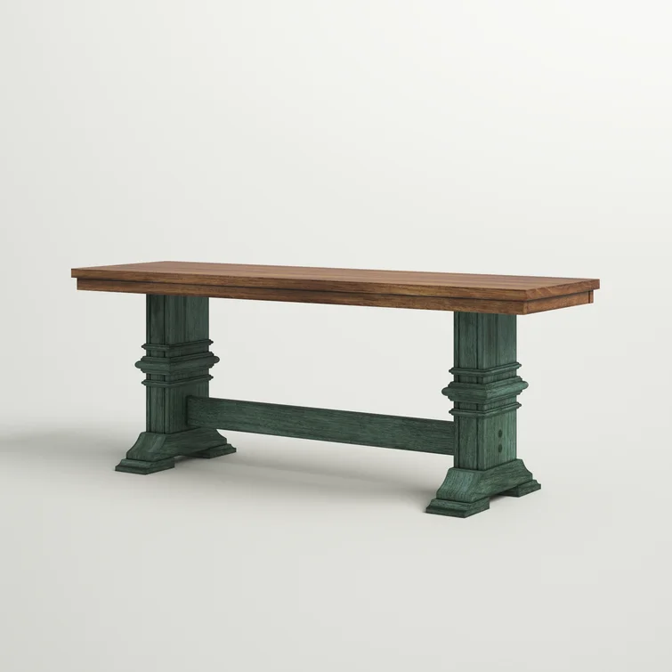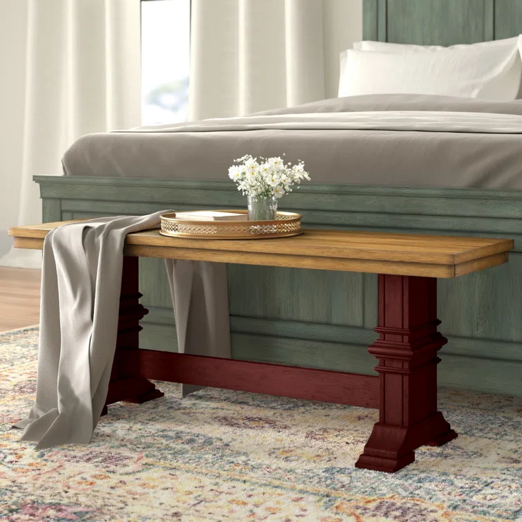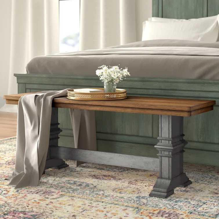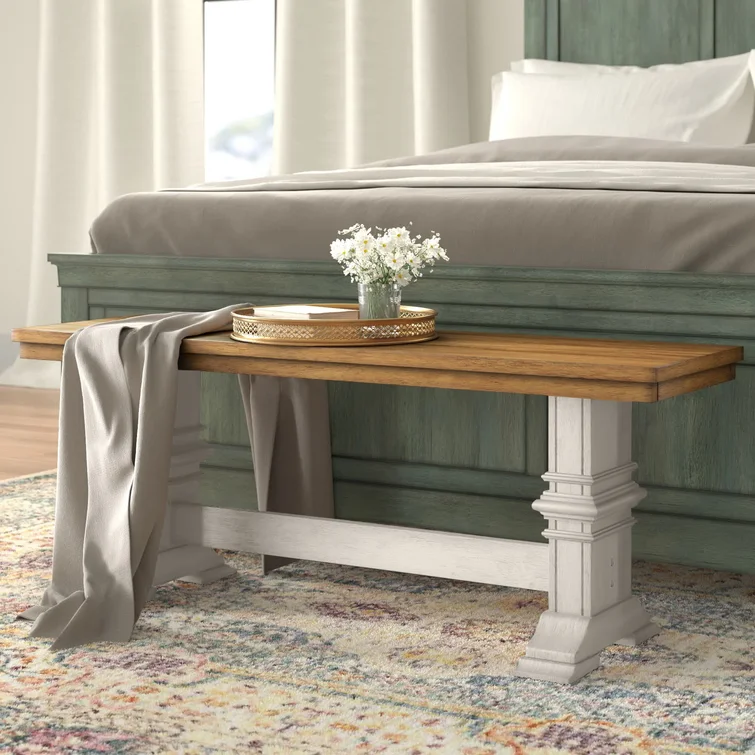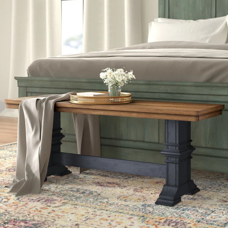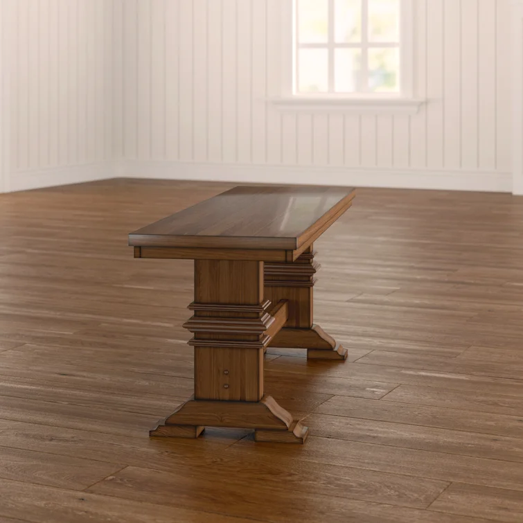This accent bench grounds your bedroom, dining room, or entryway with a classic look and sturdy construction. It's crafted from solid wood with a supportive trestle base and elegant crown molding details. Perfect as an extra seat (for 2-3) or an extra surface.