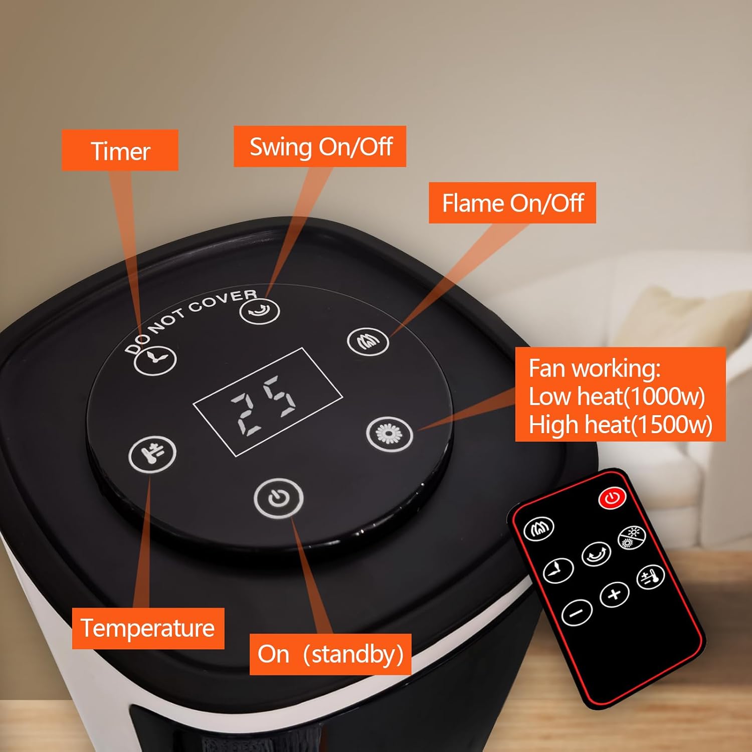 - 【Remote control】You can easily control the heater on/off, temperature, oscillation, timer and 3D flame by both the buttons under LED display and the remote control included in the package.