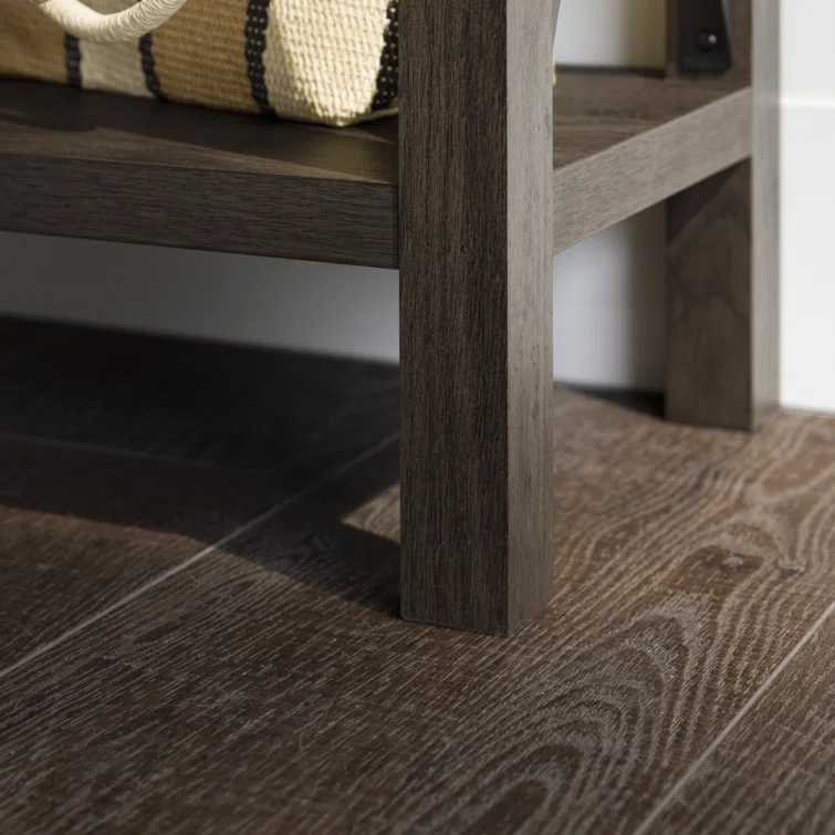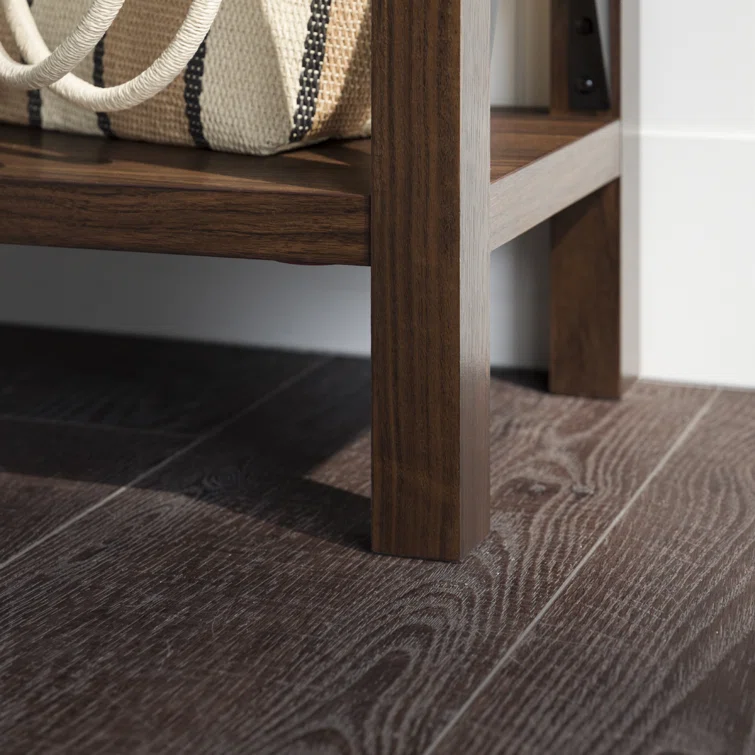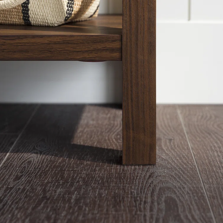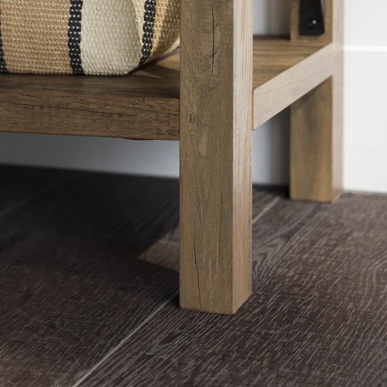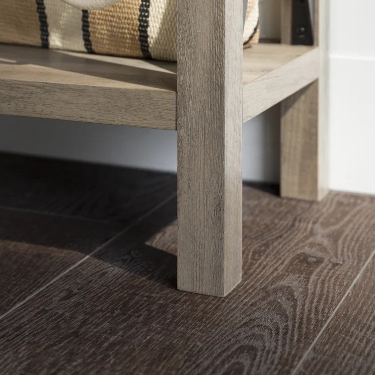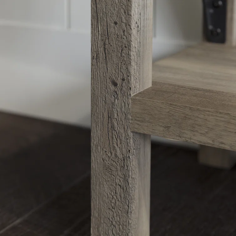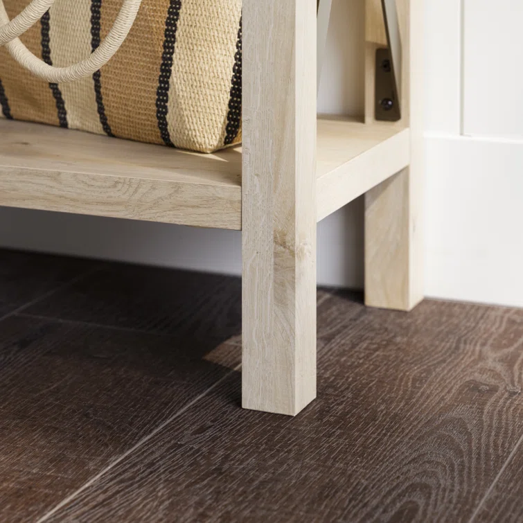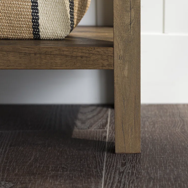 With this entry table, you’ll have a stylish entryway in no time. The urban industrial and charming, farmhouse style create a warm and inviting feel to your home, which you’ll enjoy having. With metal accents on the corners and x-shaped sides for an intriguing design. A lower shelving made from durable laminate provides a surface for your shoes when you get home or to decorate.