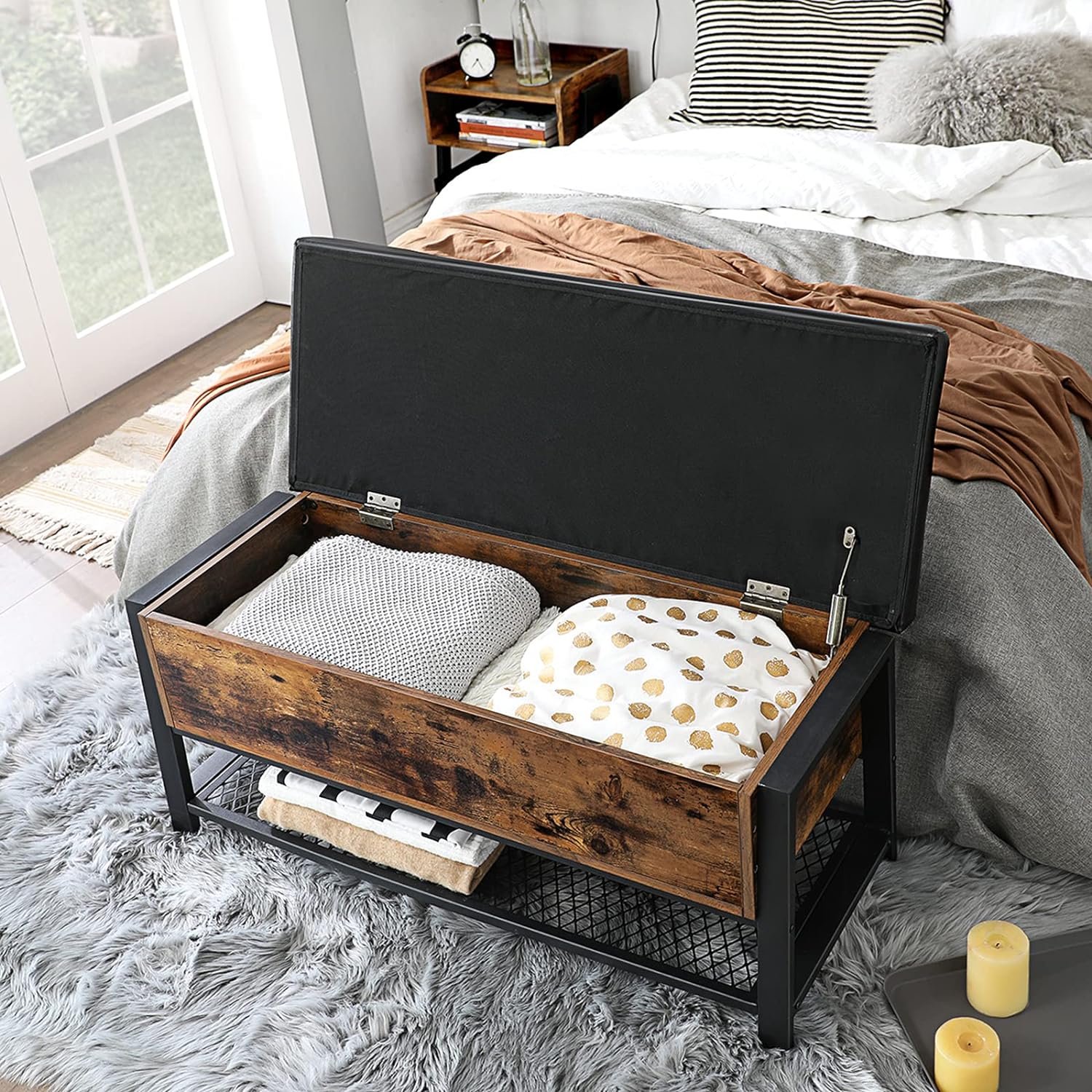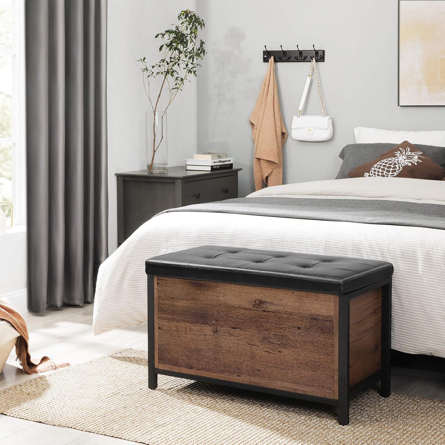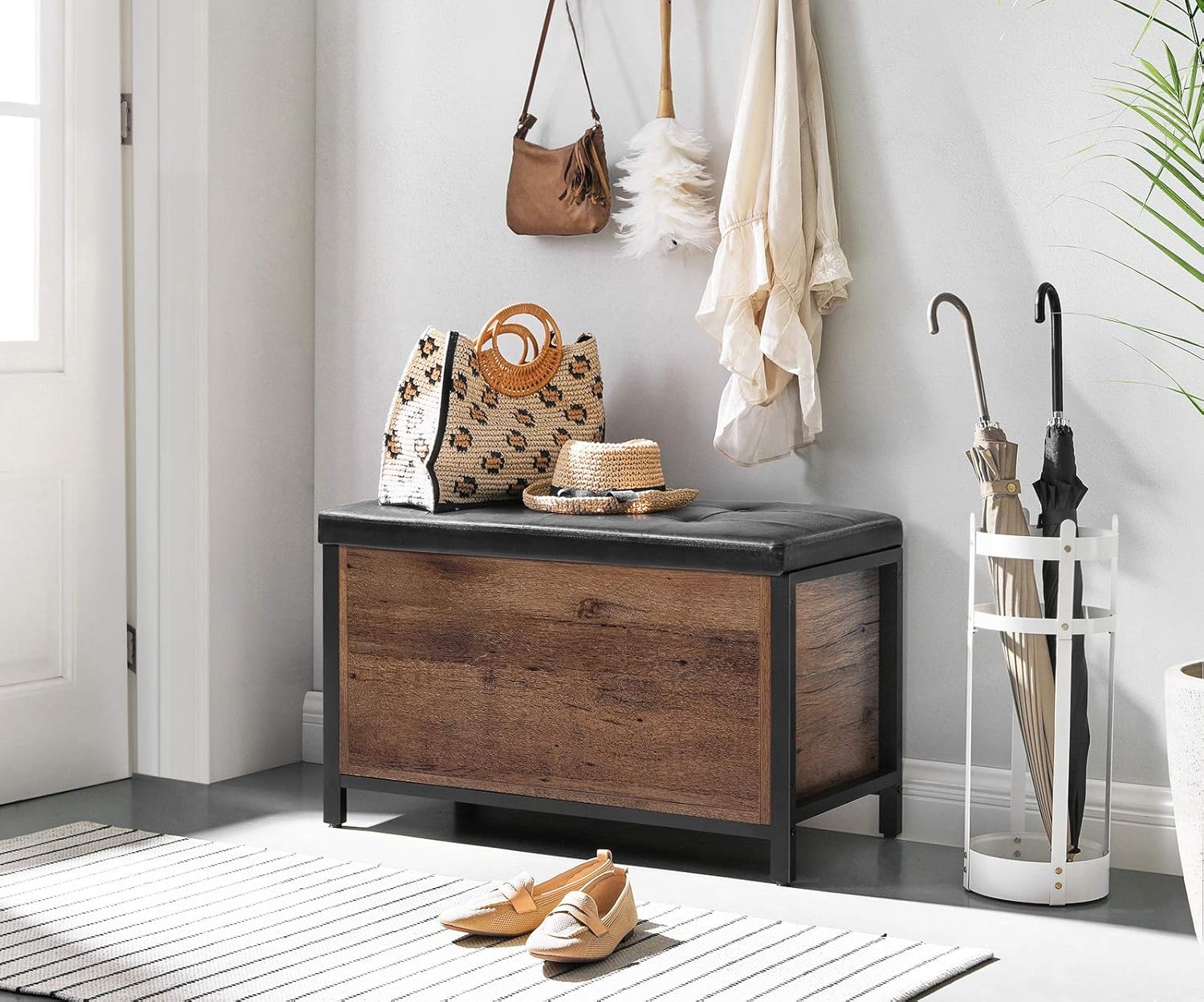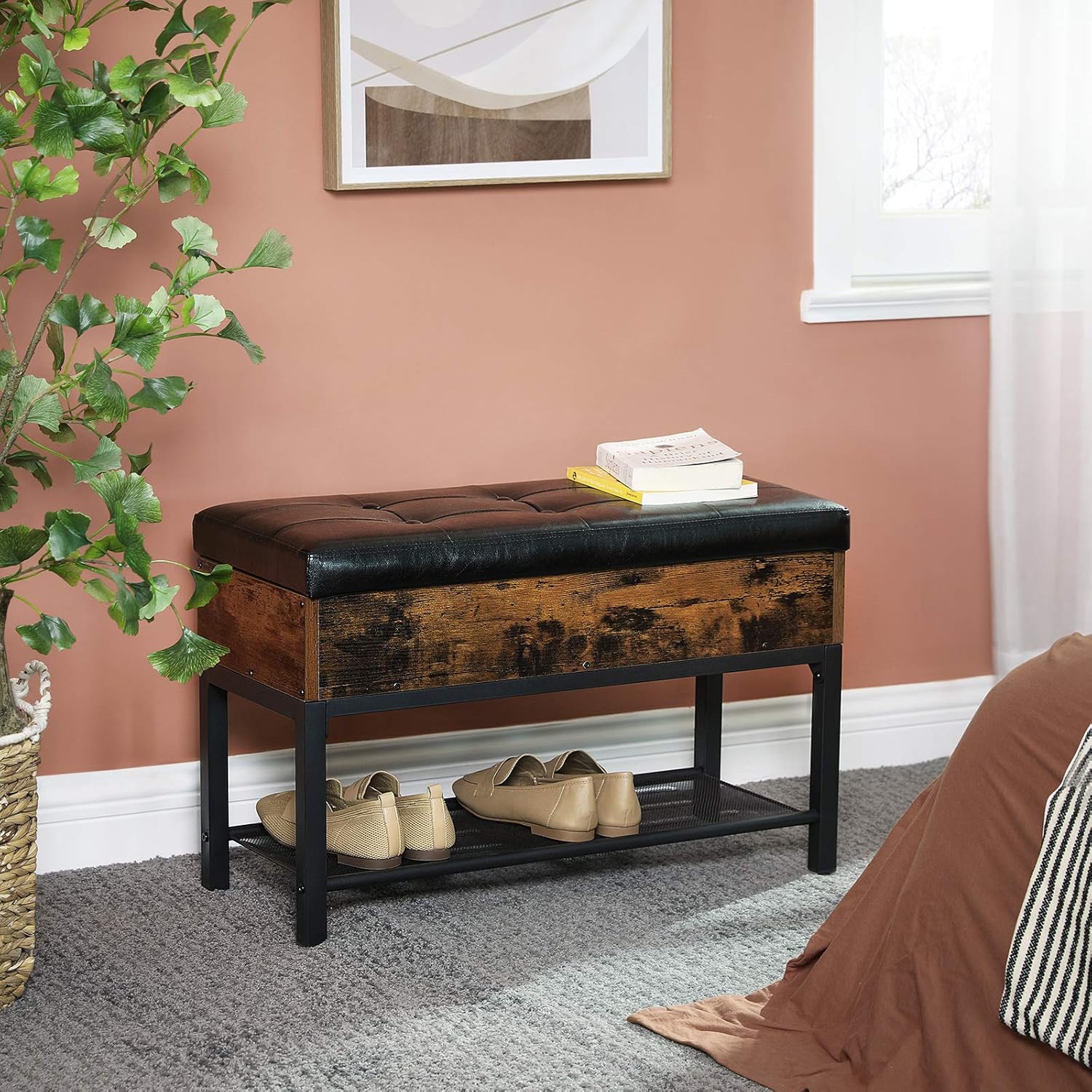 - [Sit Down] Shoes with laces are hard to put on! Take the time to sit comfortably on this well-padded bench and tie your shoes effortlessly. Made of particleboard, this bench supports up to 440 lb