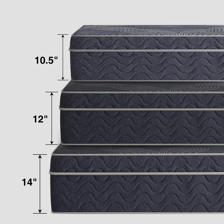 - 10.5" Profile: This 10.5" profile mattress is the perfect solution for main bedrooms, secondary bedrooms, teen/youth, and guest bedrooms. Is also conveniently offered in 12" and 14" profiles.