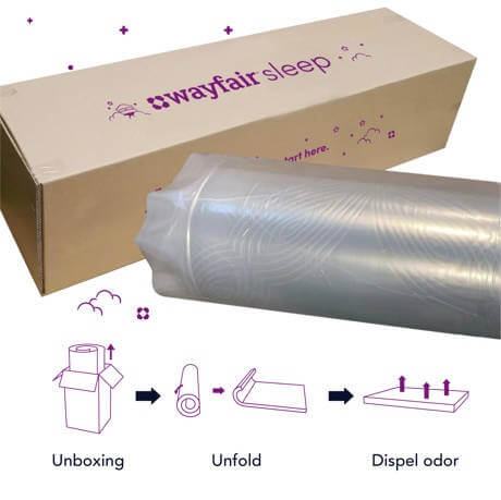 This mattress in a box is rolled, compressed, and shipped right to your door for easy setup. Allow up to 48 hours for it to fully expand to its original shape and enjoy.