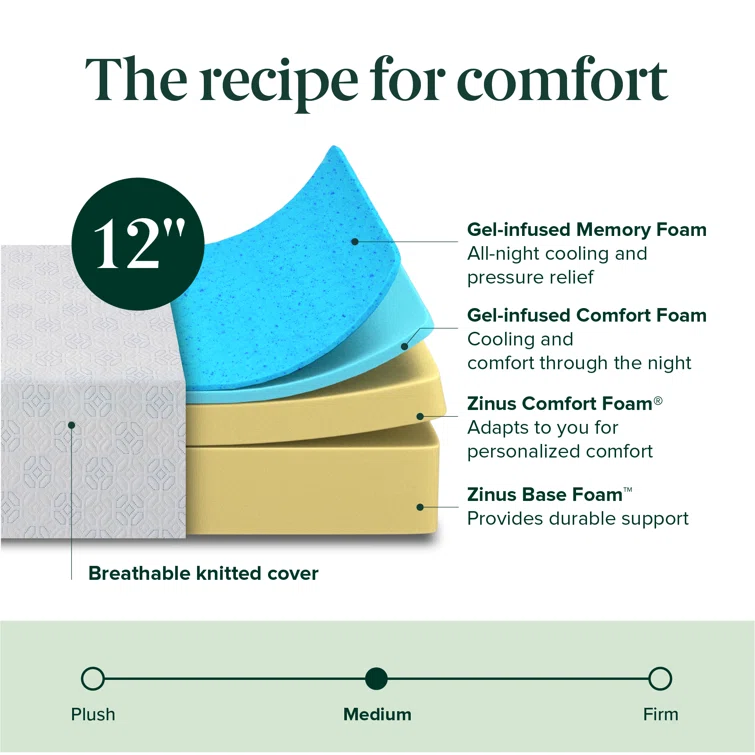 12" Medium Cooling Gel Memory Foam Mattress