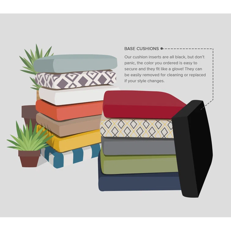 - Cushions are covered in fade-resistant Sunbrella fabric, which is easily removable to clean or switch colors with our patented cushion cover system