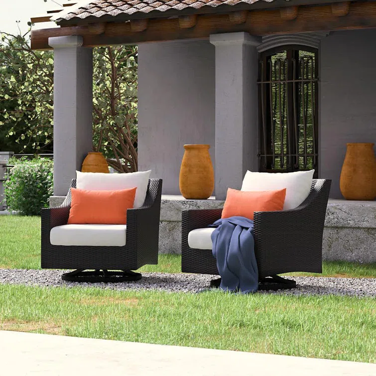- Includes: Two (2) Motion Club Chairs with Coordinated Accent Lumbar Pillows
