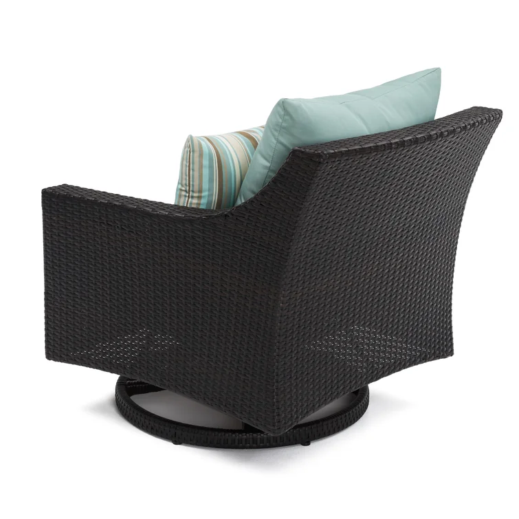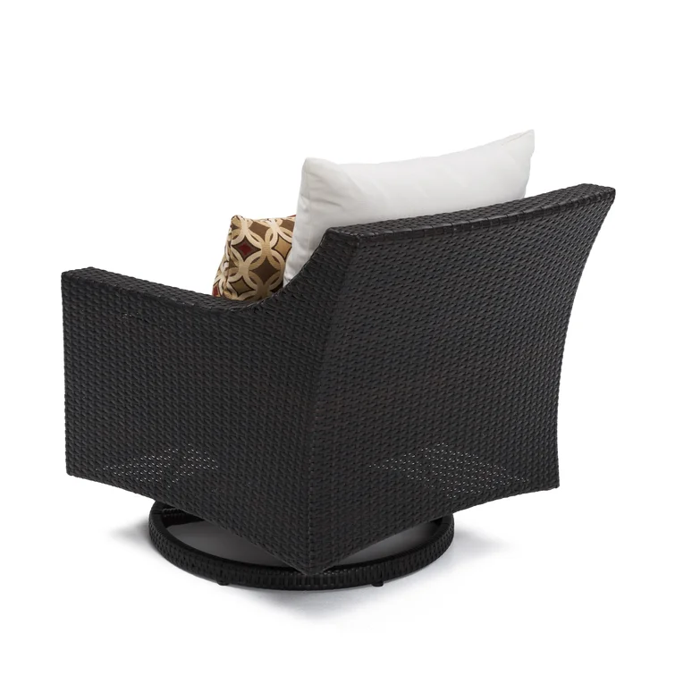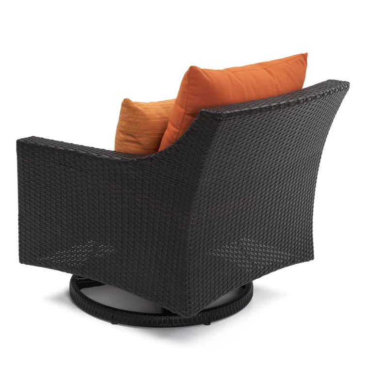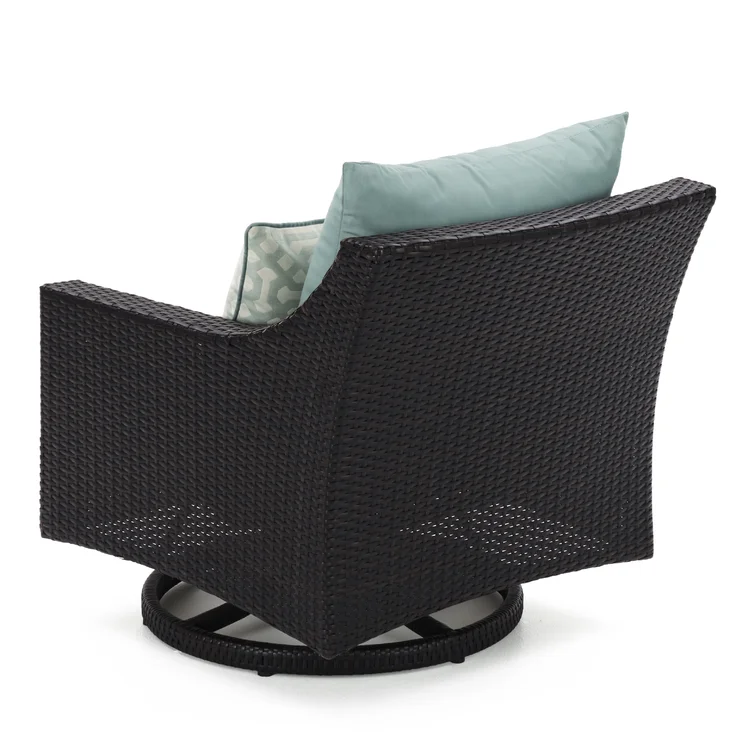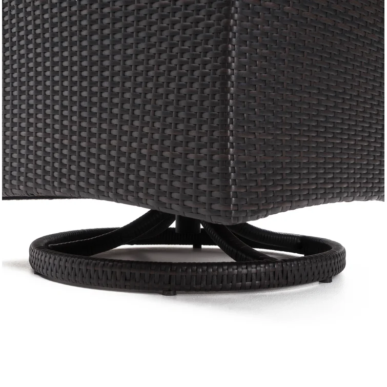 - Hand-woven Resin wicker in rich Espresso is UV, weather, and water-resistant