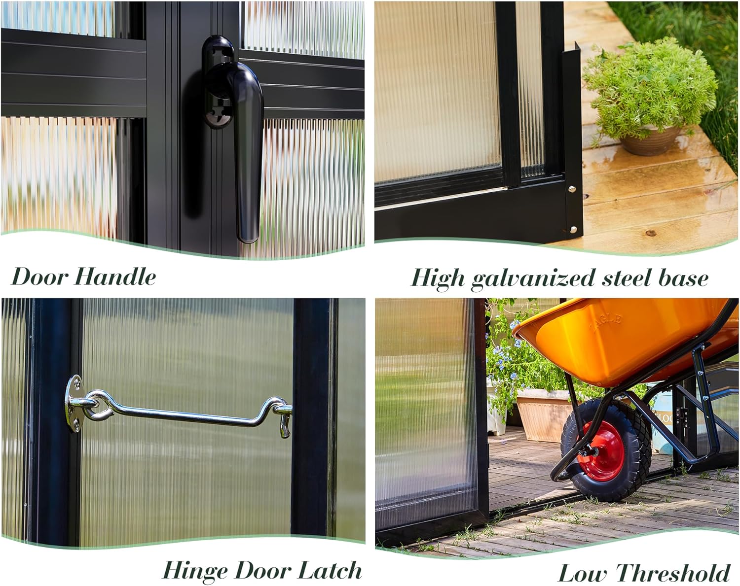 • 【Inserted PC Panel】 6mm twin-wall translucent polycarbonate PC panels, which exceptional 99.99% UV protection and warmth for a cozy environment to facilitate optimal plant growth.The 6-foot-tall widened hinged door offers effortless access for everyone.