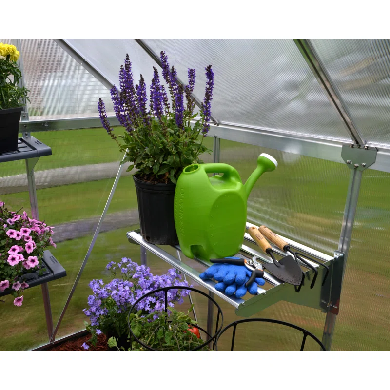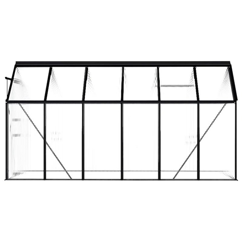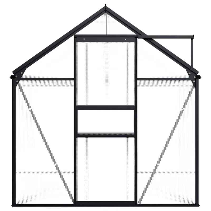 This spacious greenhouse has a total surface of 7,03 m². It can accommodate a considerable number of plants, and will be a great solution for protecting your plants from the cold weather. Made of polycarbonate panels, this solid greenhouse is UV resistant and thermally insulated. The greenhouse has a sturdy and maintenance-free aluminum construction for extra stability. The gutter system effectively allows water drainage, and the roof vent ensures optimal ventilation on hot days. Roof panels are fixed with metal clips, ensuring its durability and long-term use. Our greenhouse is easy to assemble. Please note the foundation is not included; and the roof of our greenhouse cannot withstand heavy snowfall. Warning: The greenhouse is not a construction building or conservatory, intended for leisure purposes. It is an impermanent standalone agricultural installation intended for hobby gardening only.