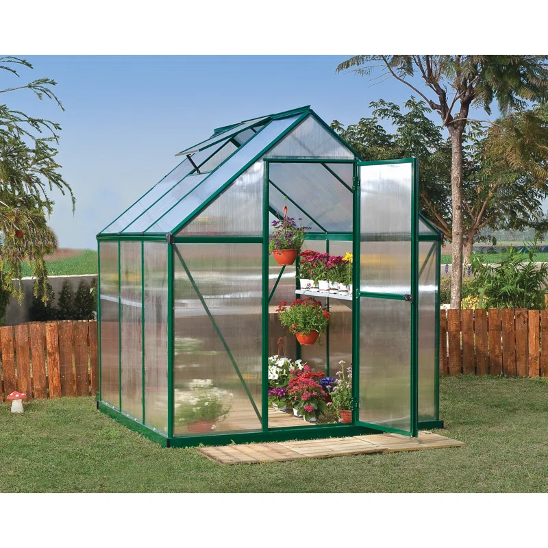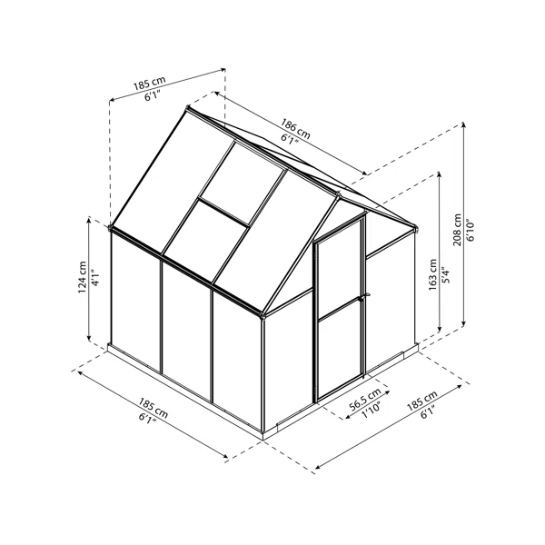 This spacious greenhouse has a total surface of 7,03 m². It can accommodate a considerable number of plants, and will be a great solution for protecting your plants from the cold weather. Made of polycarbonate panels, this solid greenhouse is UV resistant and thermally insulated. The greenhouse has a sturdy and maintenance-free aluminum construction for extra stability. The gutter system effectively allows water drainage, and the roof vent ensures optimal ventilation on hot days. Roof panels are fixed with metal clips, ensuring its durability and long-term use. Our greenhouse is easy to assemble. Please note the foundation is not included; and the roof of our greenhouse cannot withstand heavy snowfall. Warning: The greenhouse is not a construction building or conservatory, intended for leisure purposes. It is an impermanent standalone agricultural installation intended for hobby gardening only.