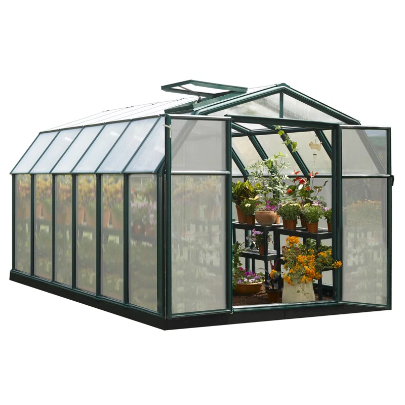 - Virtually unbreakable, high-impact resistant twin-wall polycarbonate panels - 4 mm roof and 6 mm walls
