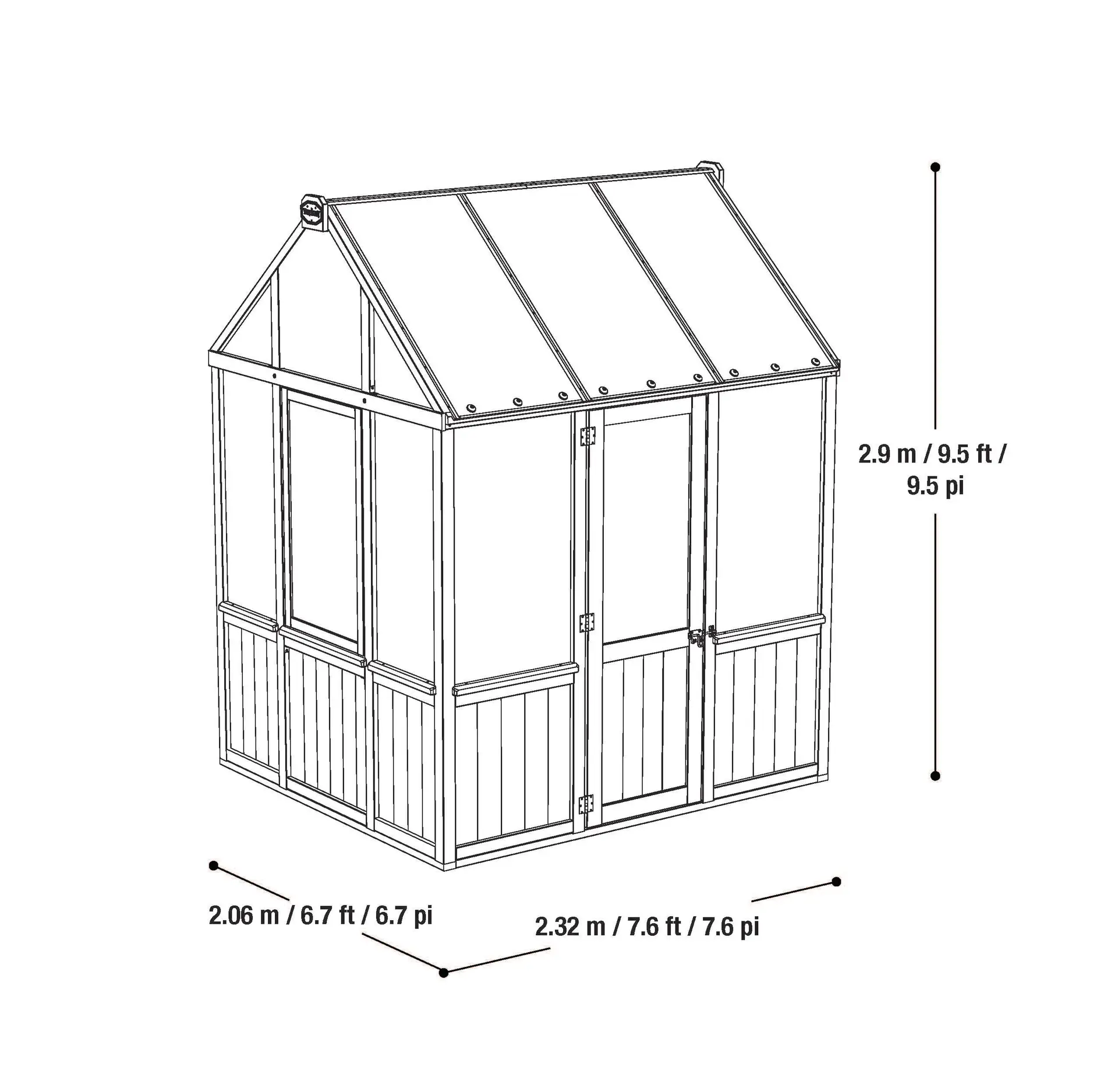 Overall Dimensions: 2.06m x 2.32m x 2.9m / 6.7 ft L x 7.6 ft W x 9.5 ft H