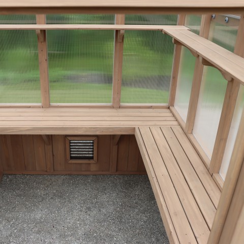 Louvered base wall vent that is necessary for optimum air intake and plant health.