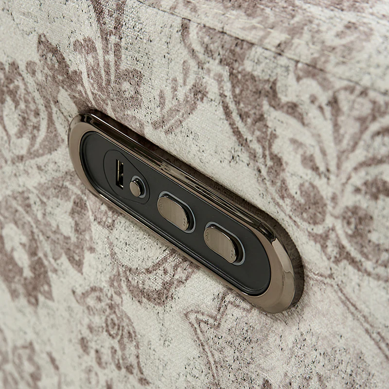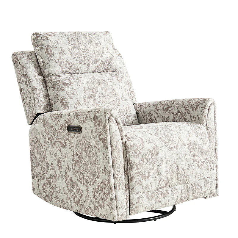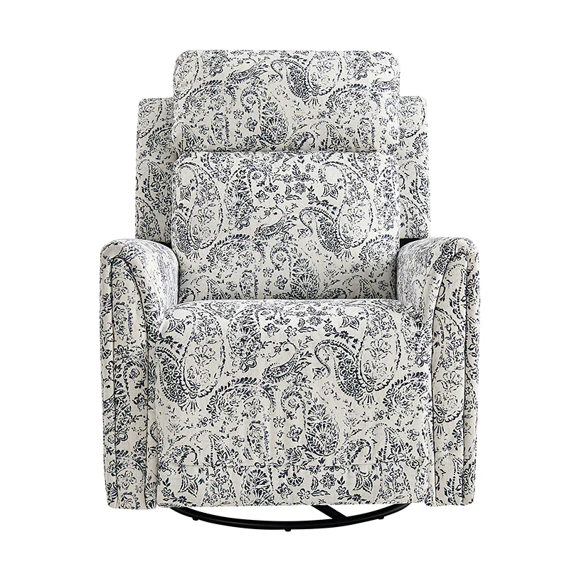 The contemporary and transitional recliner boasts a sleek and modern design that instantly elevates any living room decor, making it a perfect fit for your living space while seamlessly blending into your bedroom or office. With swivel and rocker capabilities, it offers versatile comfort for any settings. The adjustable headrest ensures personalized support, while USB and Type-C ports provide convenient connectivity for your devices. Its one-touch reset feature simplifies operation, ensuring effortless relaxation. Choose from a variety of fabric patterns, including five distinct floral designs, to complement your d¨¦cor and add a touch of elegance to your home furnishings.